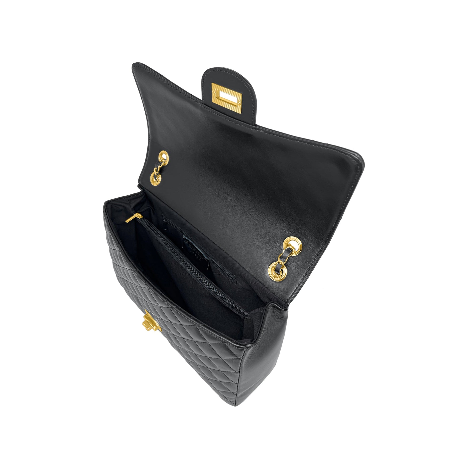 Il design trapuntato è impreziosito dalla chiusura metallica Twist Lock che aggiunge un tocco sofisticato e moderno.
