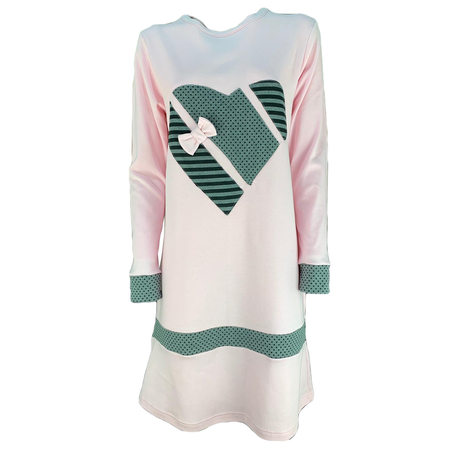 Camicia da notte a manica lunga con cuore e fiocco sul davanti.