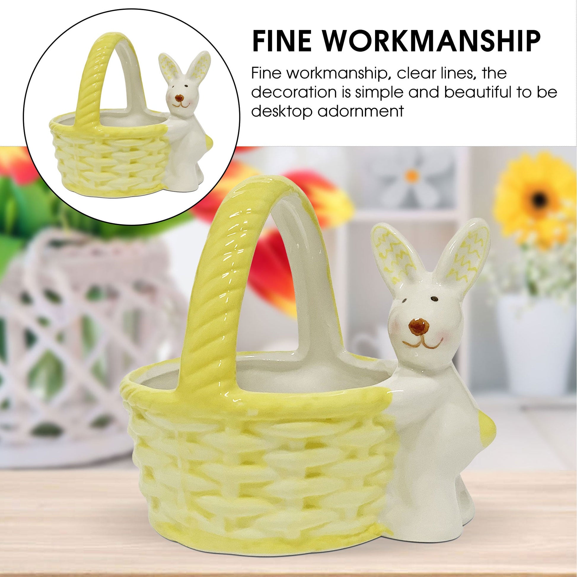 Con questo prodotto, potrai decorare la tua casa per Pasqua in modo unico e originale, rendendo la festa ancora più speciale. Il cestino è realizzato con ceramica di alta qualità e con la massima cura per i dettagli, per garantire un prodotto resistente e duraturo nel tempo.