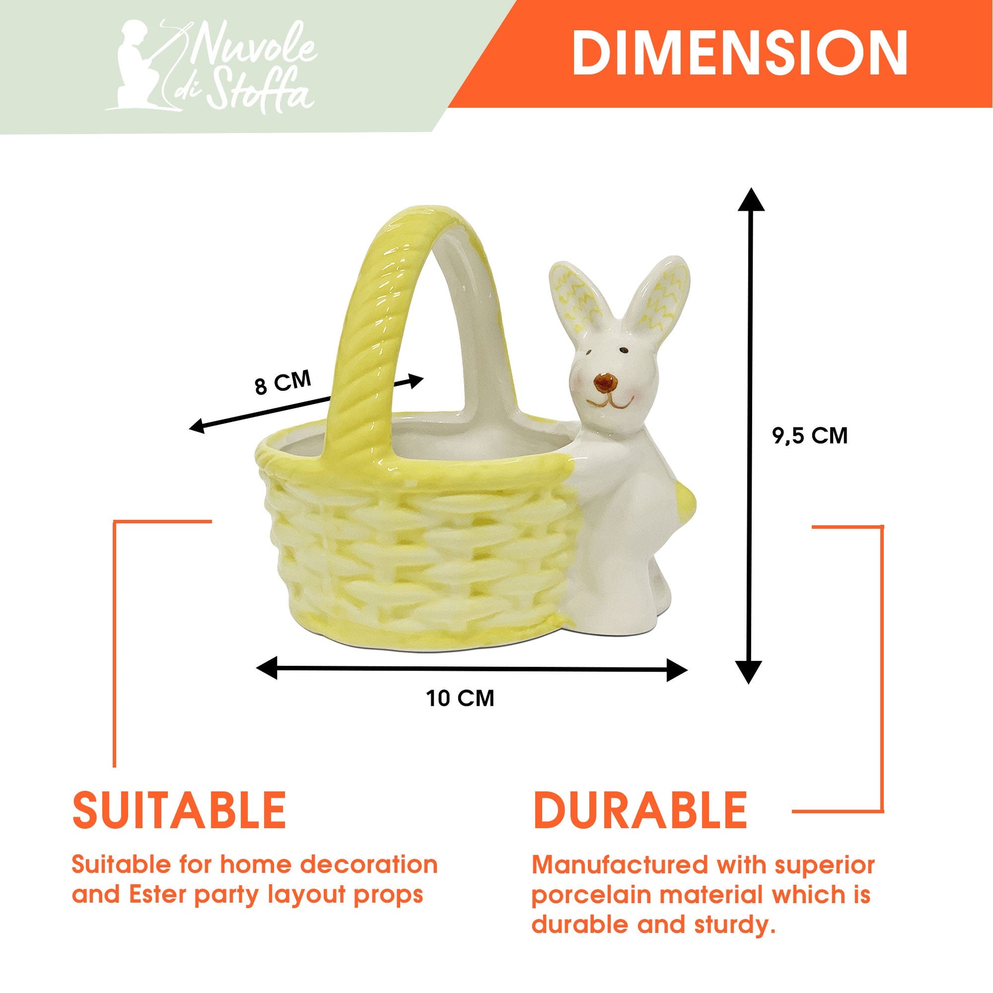Grazie alle sue dimensioni, potrai utilizzarlo come portachiavi, come cestino porta oggetti o portamonete e facilmente posizionarlo in qualsiasi angolo della tua casa, rendendolo il complemento perfetto per la tua decorazione di Pasqua.