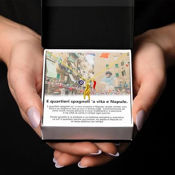 Questa collana rappresenta un legame eterno con Napoli, un gioiello classico e sempre di tendenza, simbolo di amore infinito.