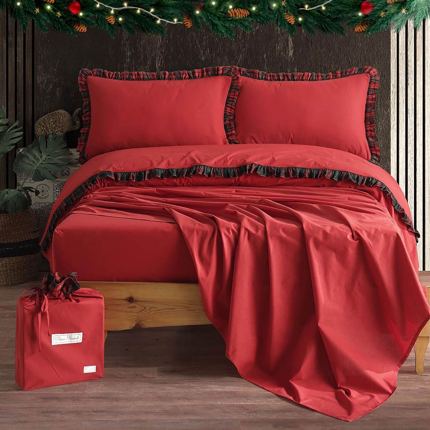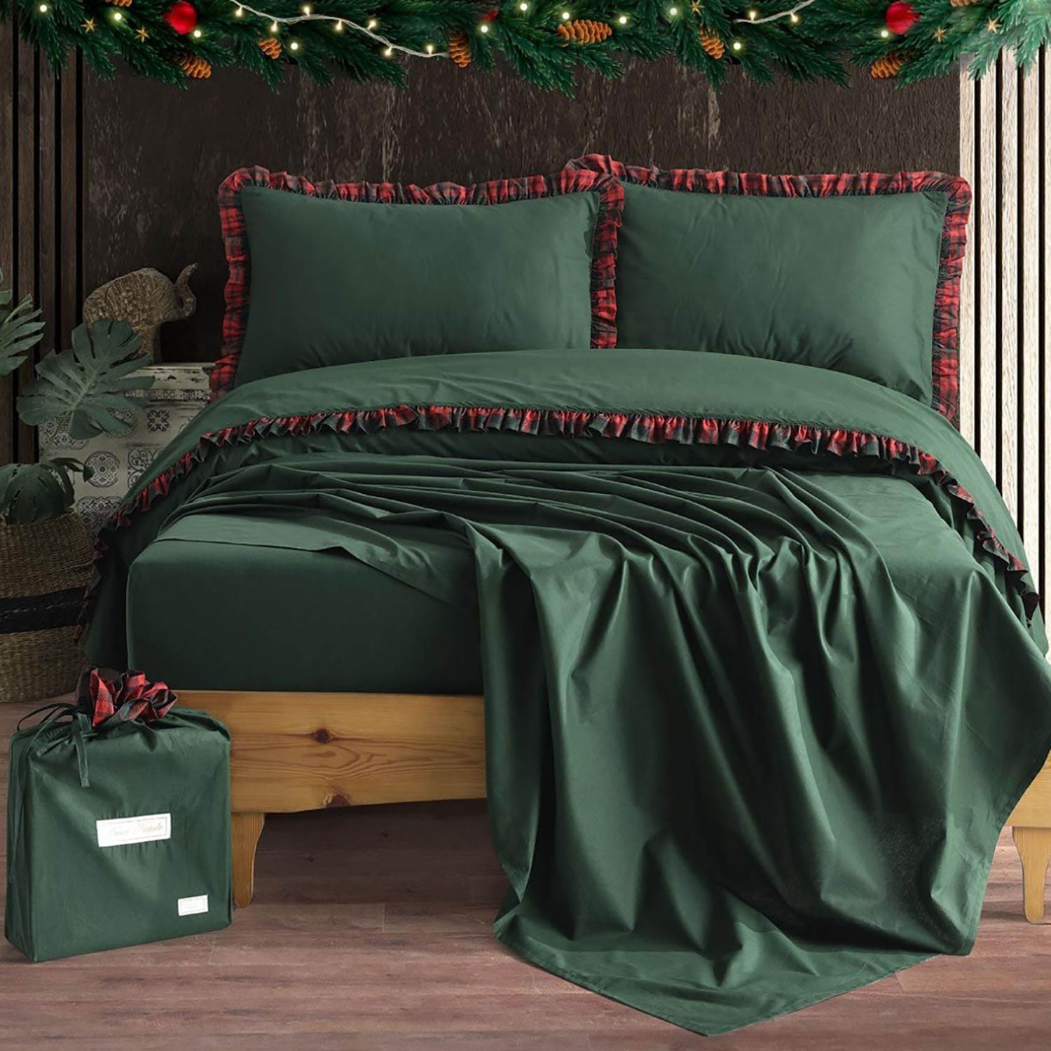 Il completo lenzuola matrimoniale di Maestri Cotonieri ti permetterà di dare un tocco di stile al tuo letto senza trascurare il confort e rendere la tua camera in perfetto clima natalizio.
