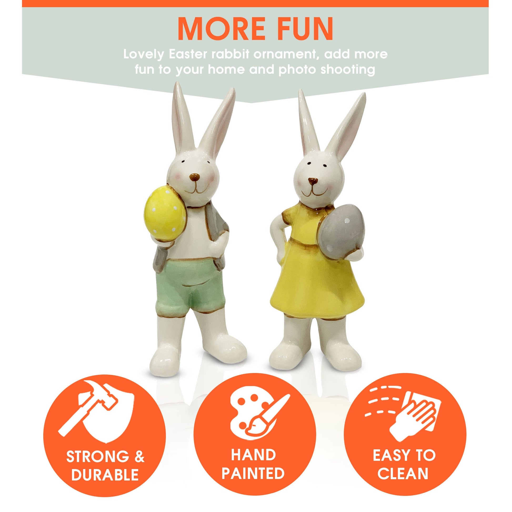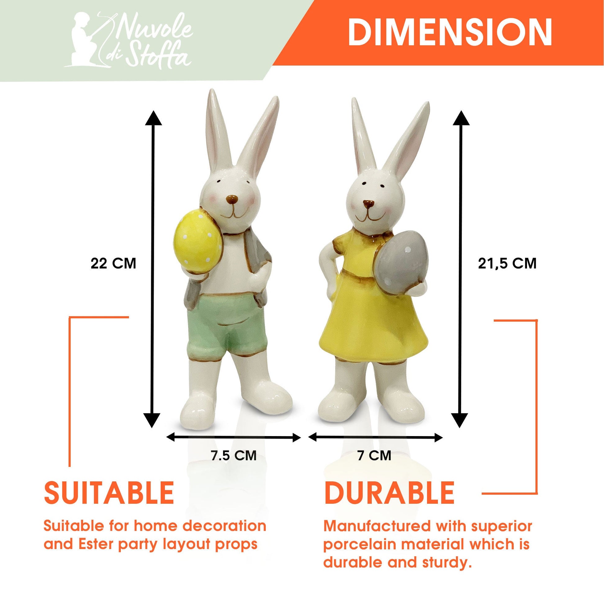 Realizzati in ceramica di alta qualità, questi coniglietti sono caratterizzati da un design unico e dettagliato, che ne fa una decorazione pasquale perfetta per la tua casa.