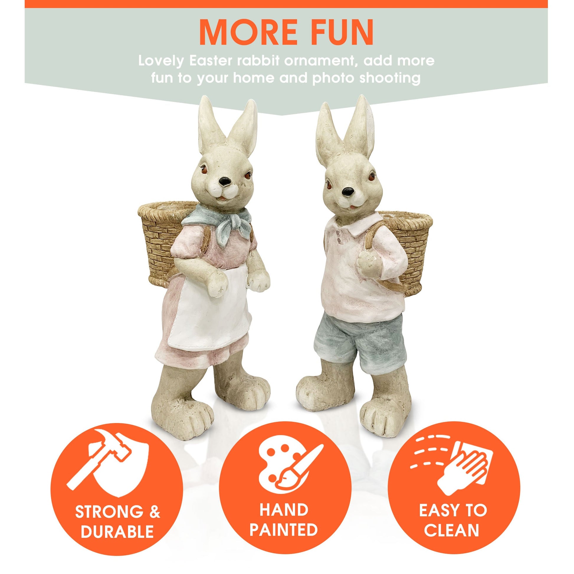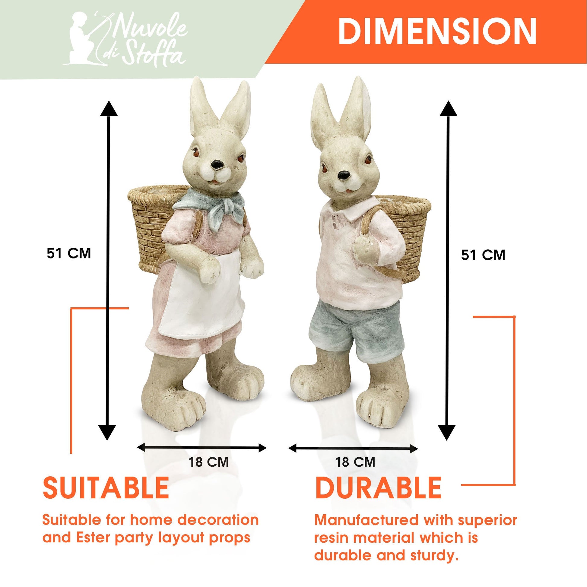 Realizzati in resina di alta qualità, questi coniglietti sono caratterizzati da un design unico e dettagliato, che ne fa una decorazione pasquale perfetta per la tua casa.