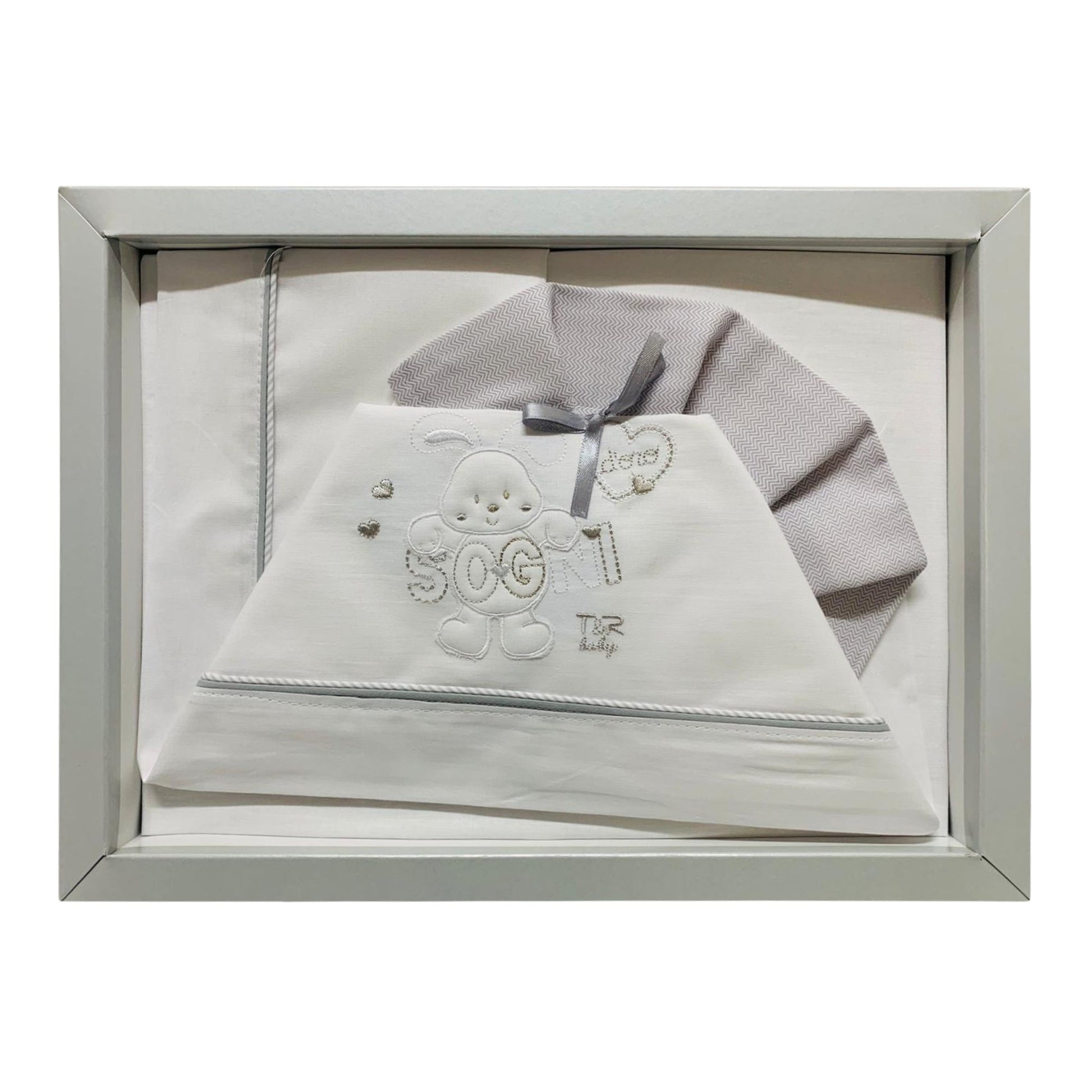 Completi Lenzuola in 100% Cotone per culla/carrozzina con ricami e applicazioni.