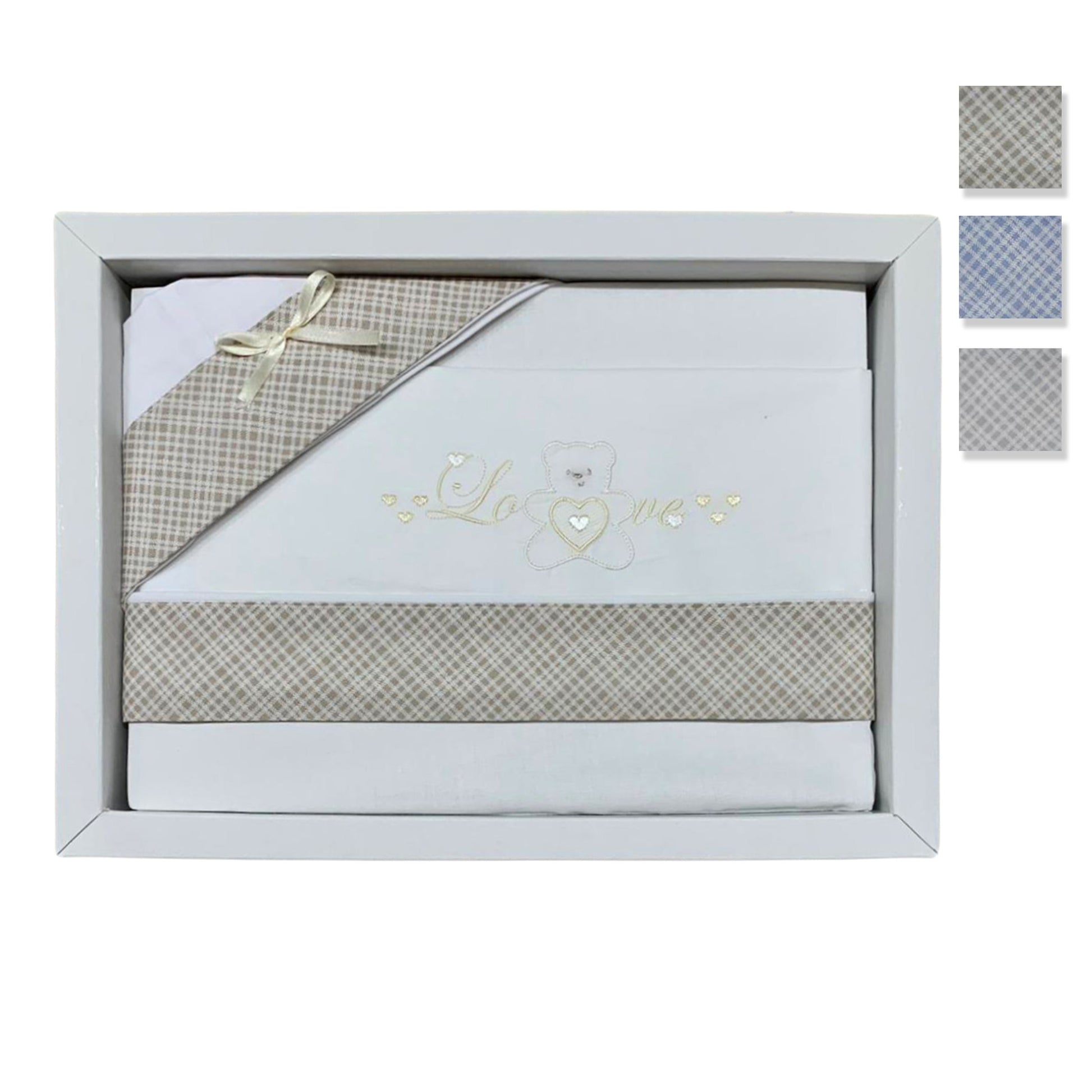 Completi Lenzuola in 100% Cotone per maxi culla con ricami e applicazioni.