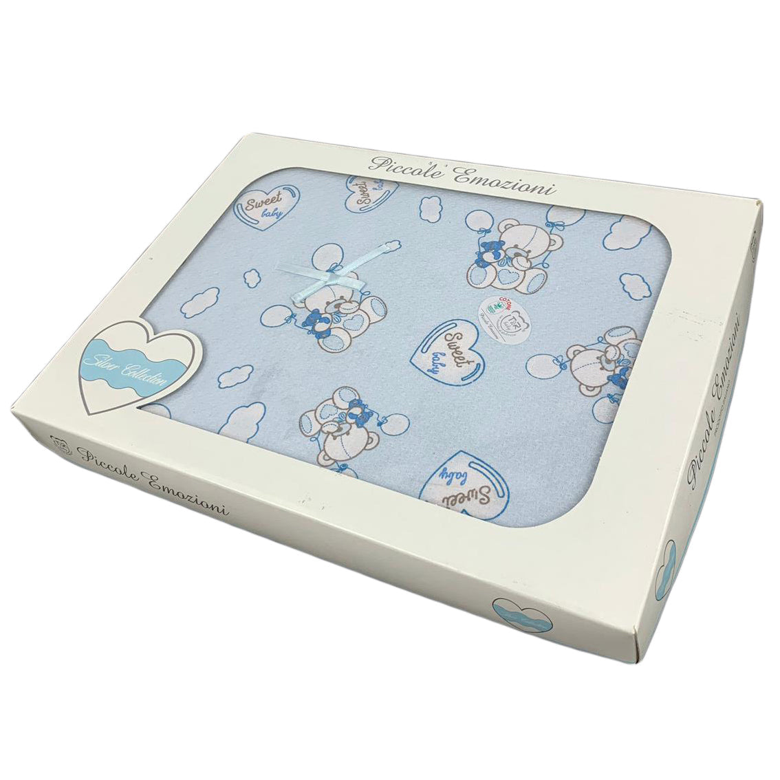 La copertina per neonato della Silver Collection di Piccole Emozioni è in morbido tessuto delicato che avvolgerà il vostro bambino in un soffice abbraccio.