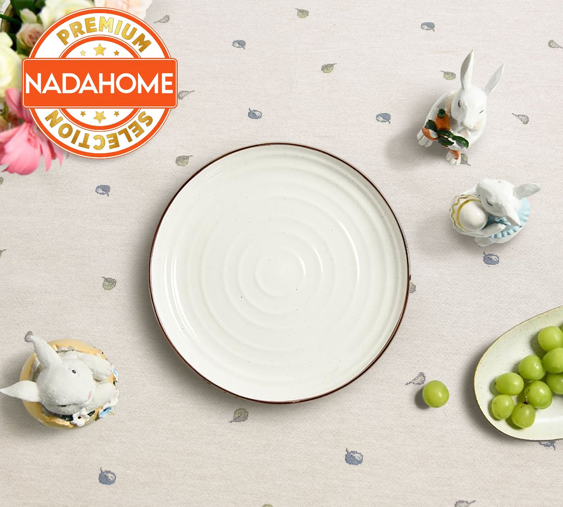 L'interno della tovaglia è tutto cosparso di foglie, armoniosamente coordinate al motivo floreale circostante, per un design raffinato e accattivante. Perfetto per decorare la tua tavola durante le festività pasquali o per dare un tocco primaverile alla tua casa.