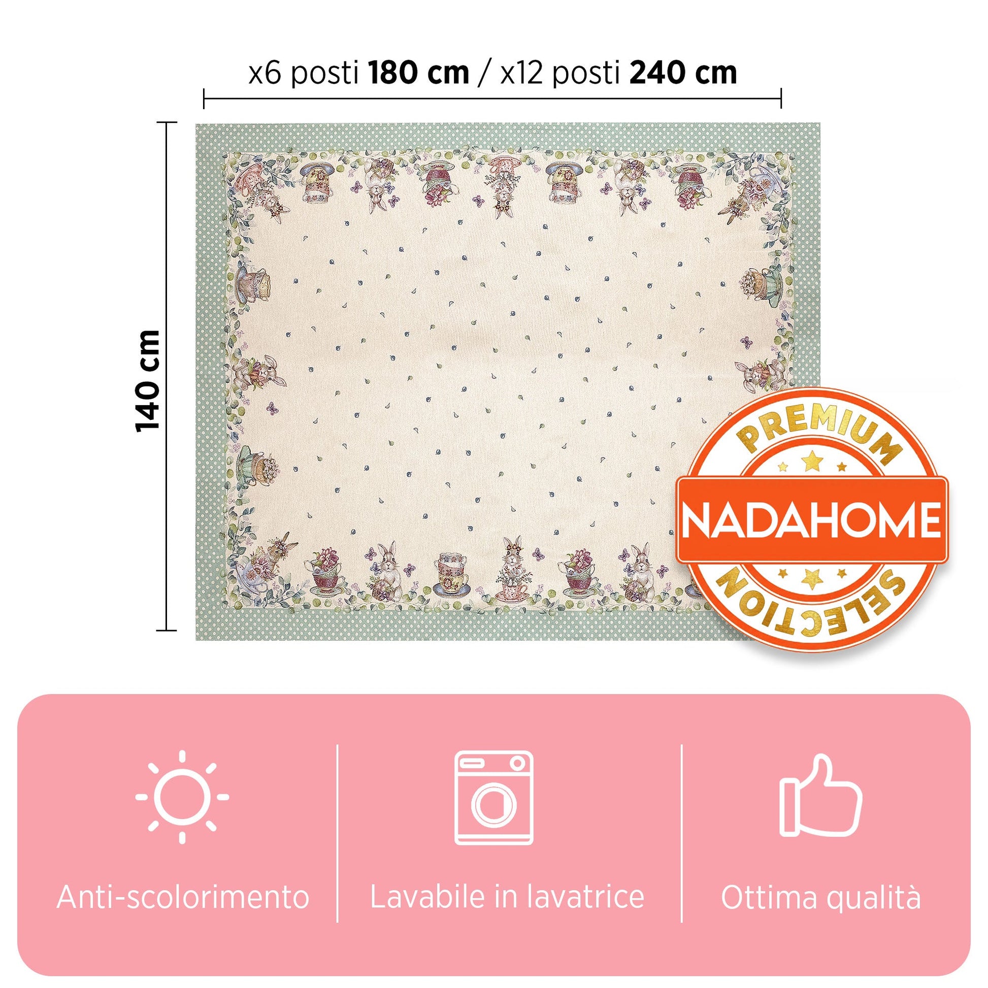 Pratico e resistente, il copritavolo è antiscolorimento e lavabile in lavatrice, garantendo una lunga durata senza rinunciare alla bellezza. Disponibile in due misure, 6 posti (140x180 cm) e 12 posti (140x240 cm), si adatta alle esigenze di ogni famiglia.