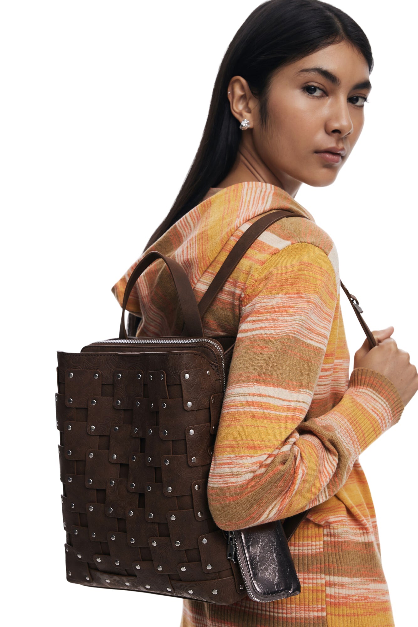 DESIGUAL Zaino Donna Marrone New Patch Sumy con Borchie