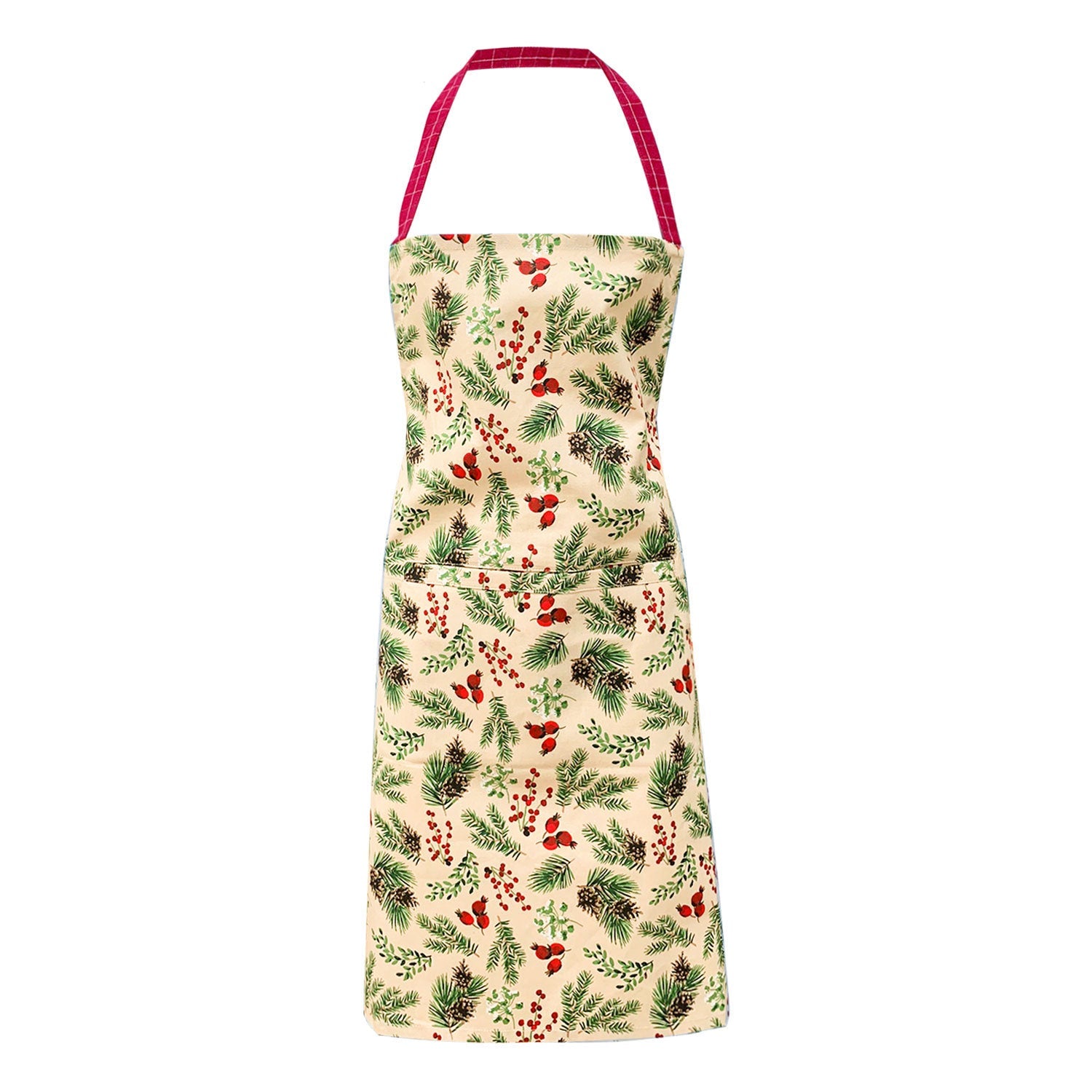 Grembiule da cucina con tasca natalizio Nuvole di Stoffa in puro cotone in fantasia Tartan e decori di Natale.
