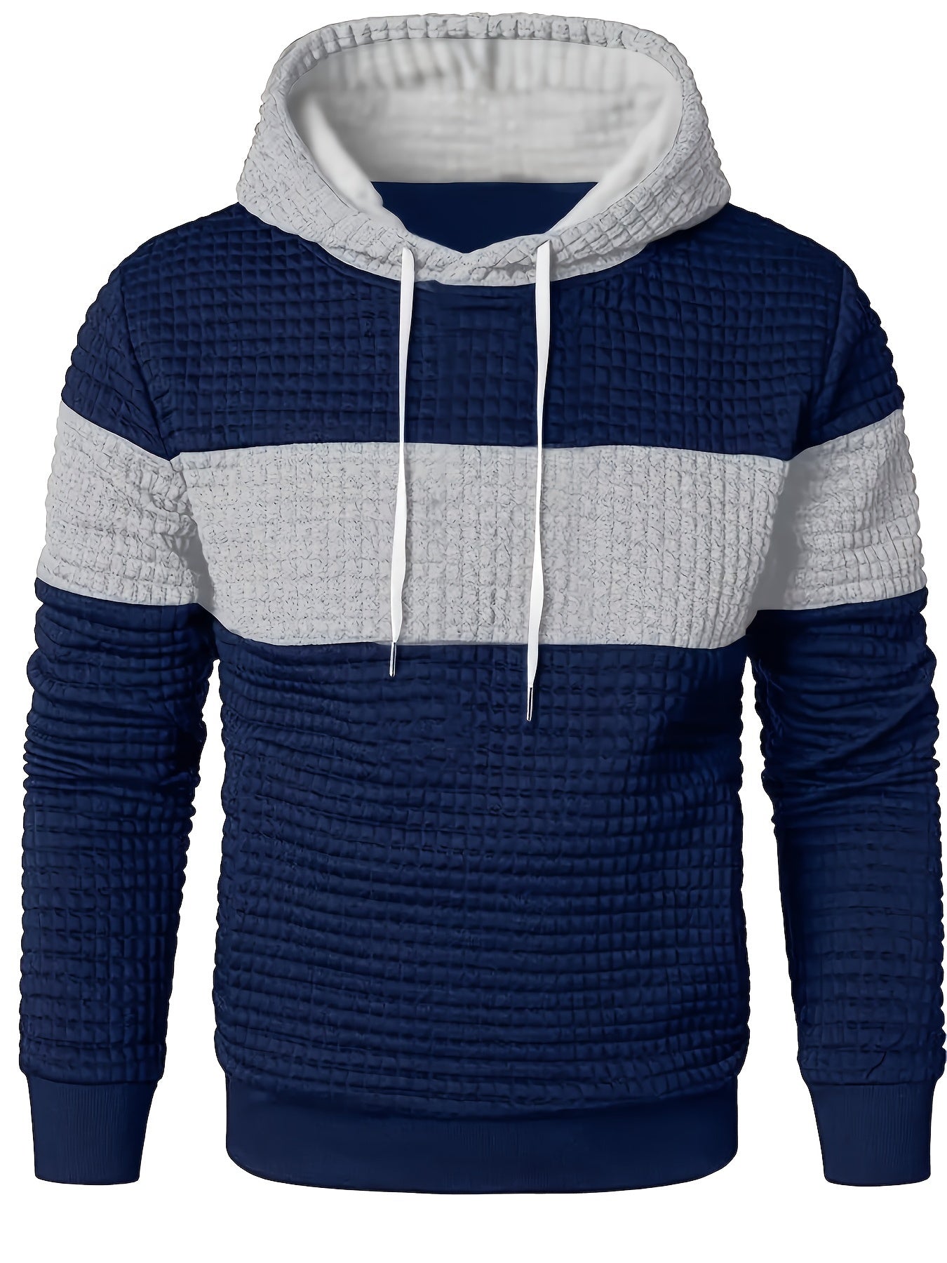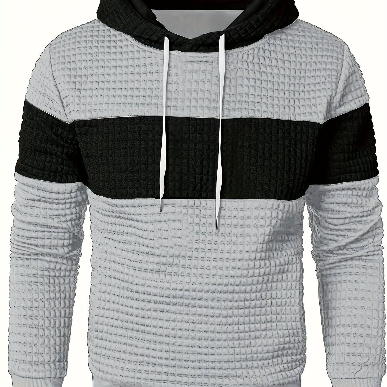Men'S Color Block Hoodie, Casual Polyester Knit Sweatshirt with Stretch Fabric, Regular Fit, Long Sleeve, All-Season, Pullover Style, Fashionable Plaid Pattern, for Daily and Leisure Wear