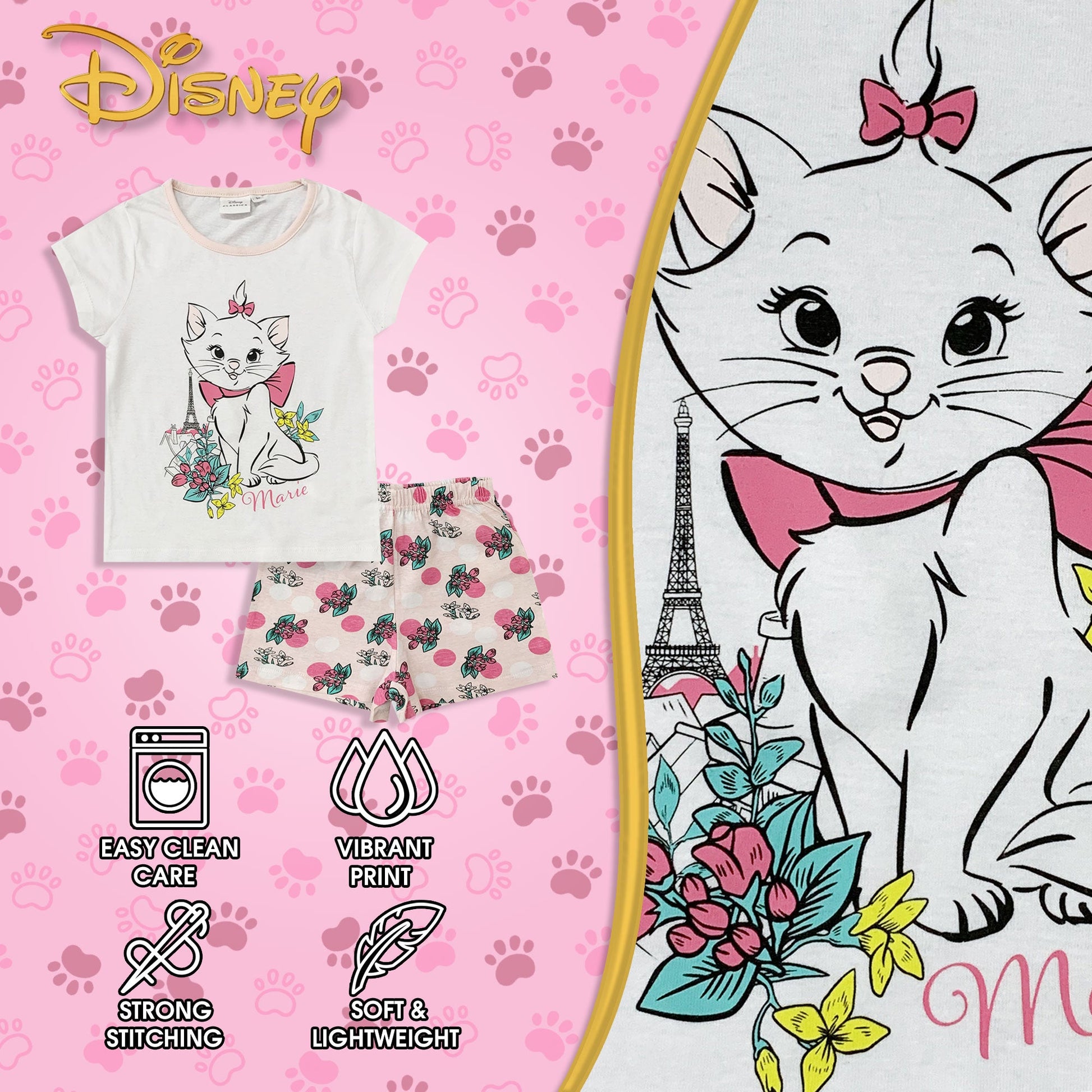 Pigiama bambina Disney Aristogatti Marie pantaloncino in cotone stampato 6032