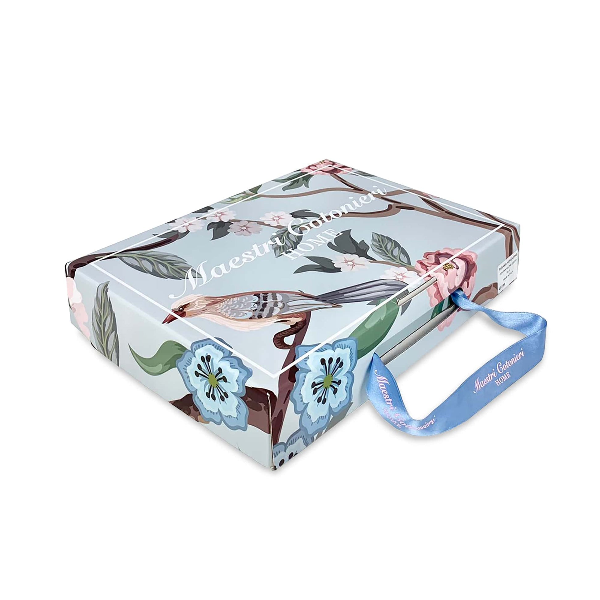Il prodotto è confezionato in un elegante scatolina firmata Maestri Cotonieri con manico di raso.