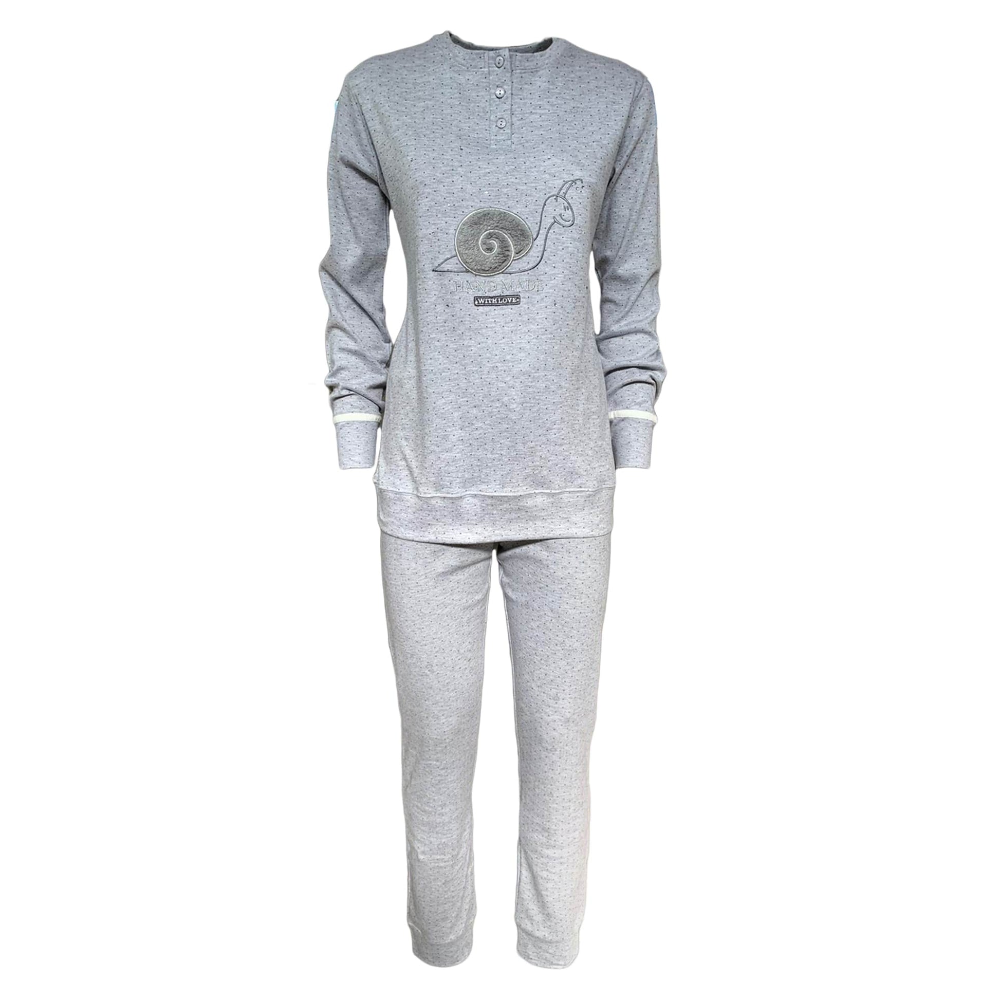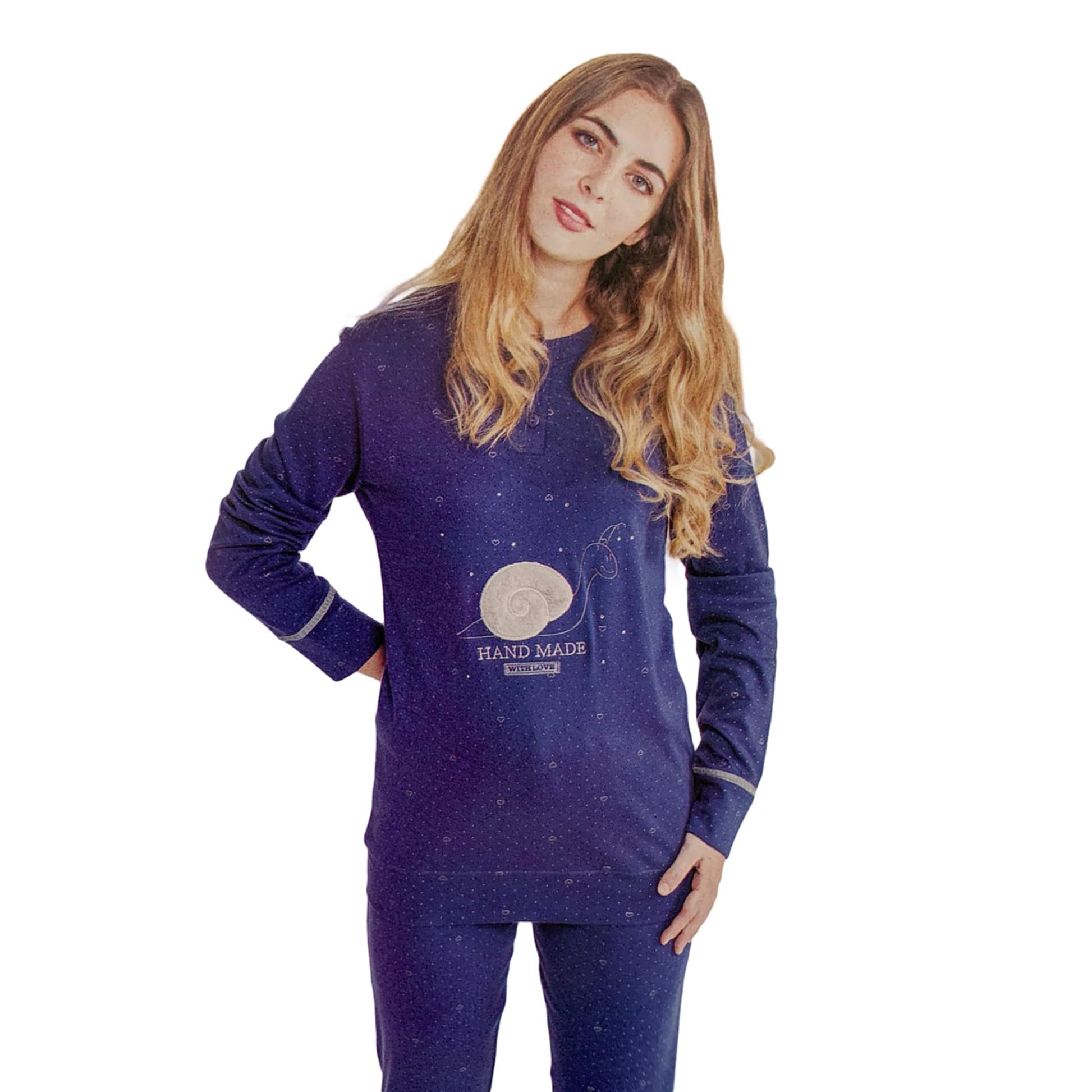 Pigiama serafino invernale Interlock donna lungo in caldo cotone 2 pezzi.