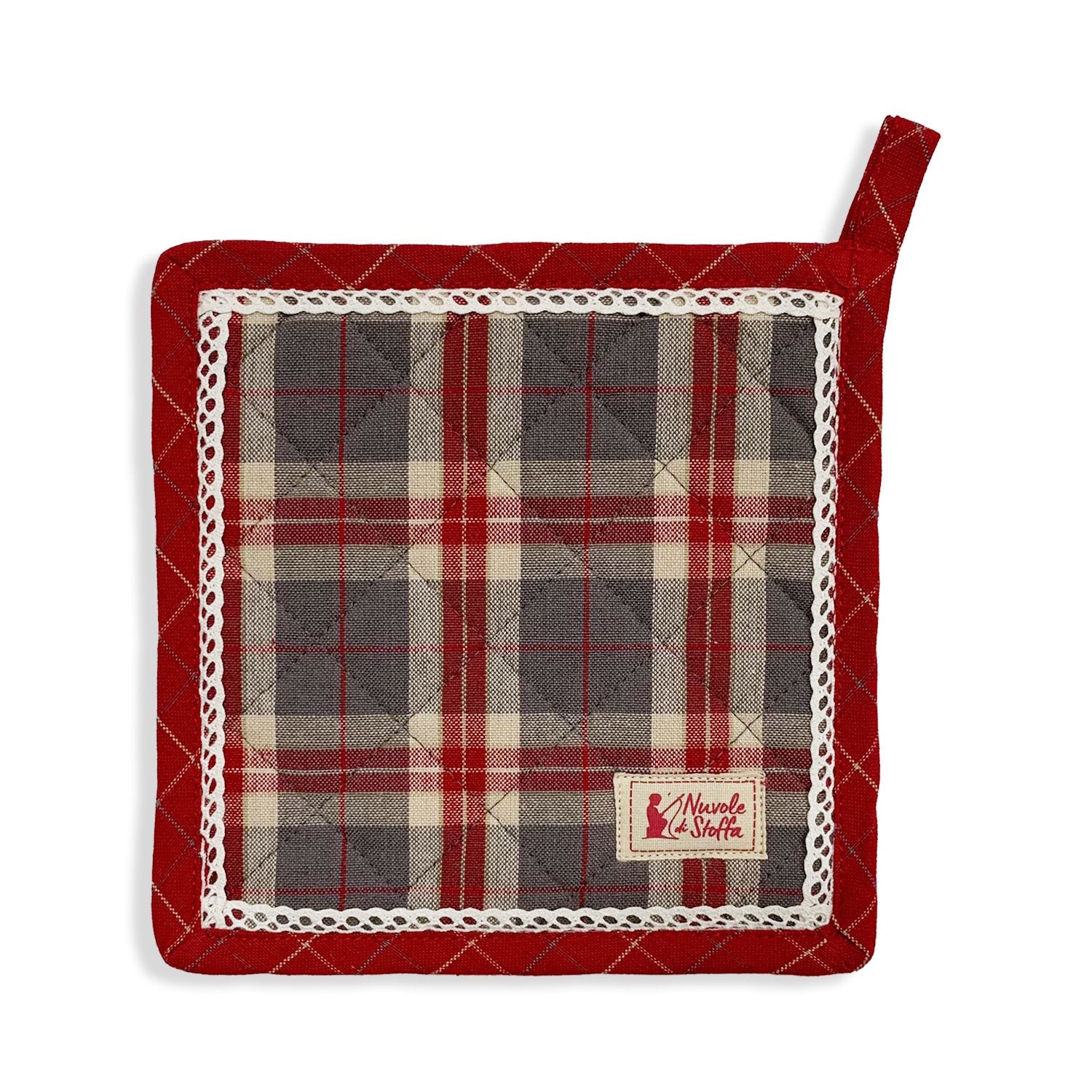 Presina da forno natalizia collezione Bonnie stampa decori e tartan in puro cotone con gancetto in tessuto ideale per appenderla.