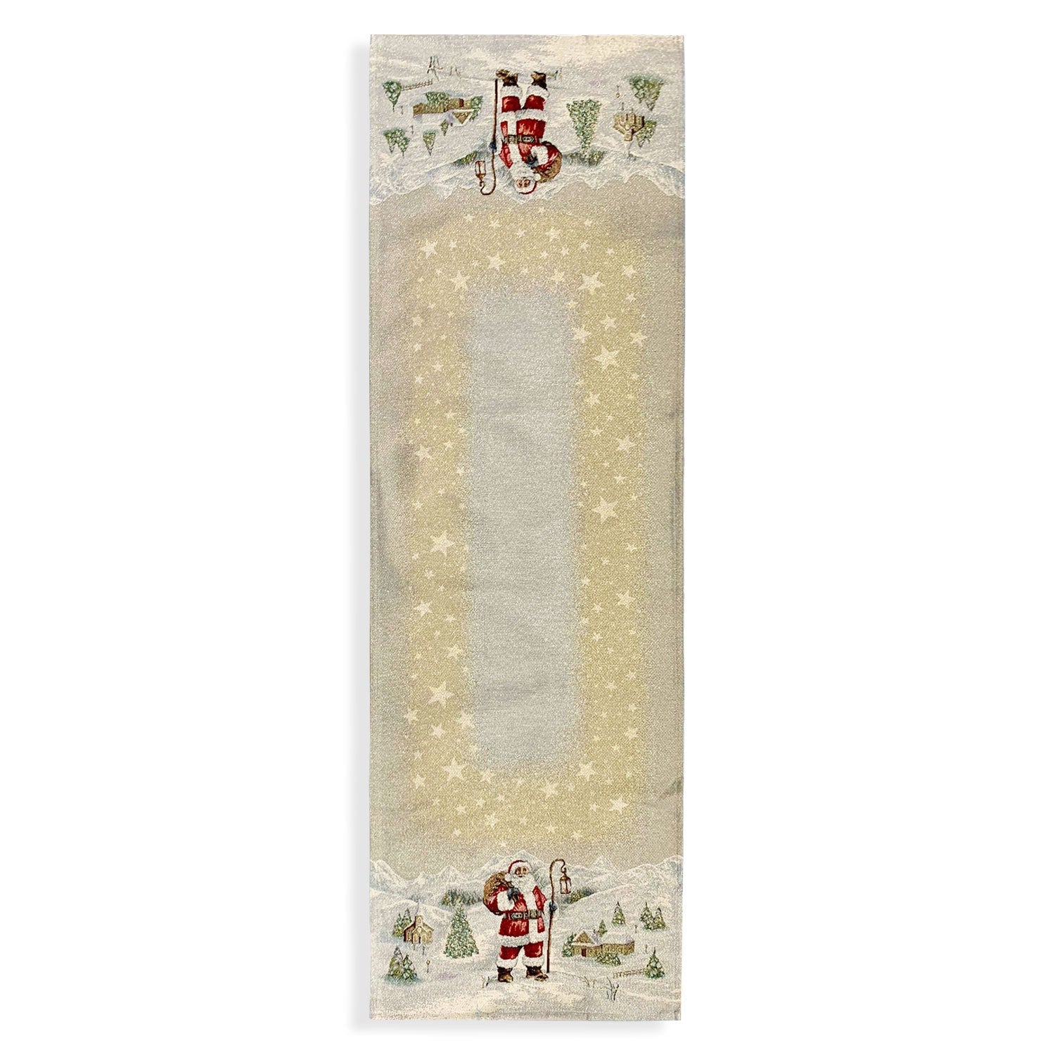 Runner in tessuto gobelin con glitter Natalizio Maestri Cotonieri fantasia paesaggio natalizio.