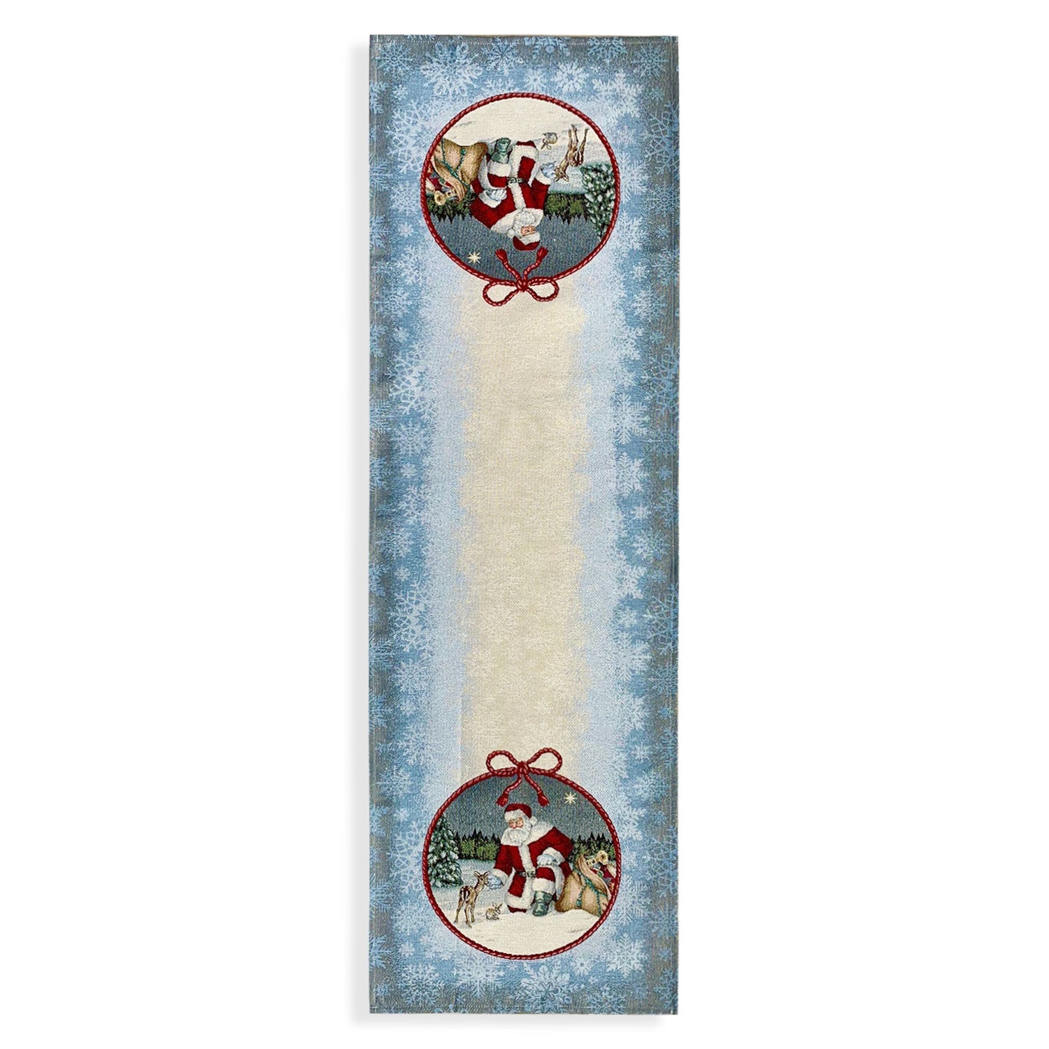 Runner in tessuto gobelin con glitter Natalizio Maestri Cotonieri fantasia Babbo Natale.