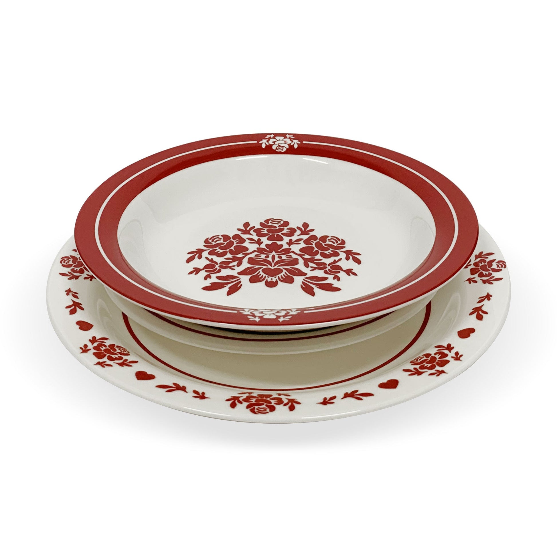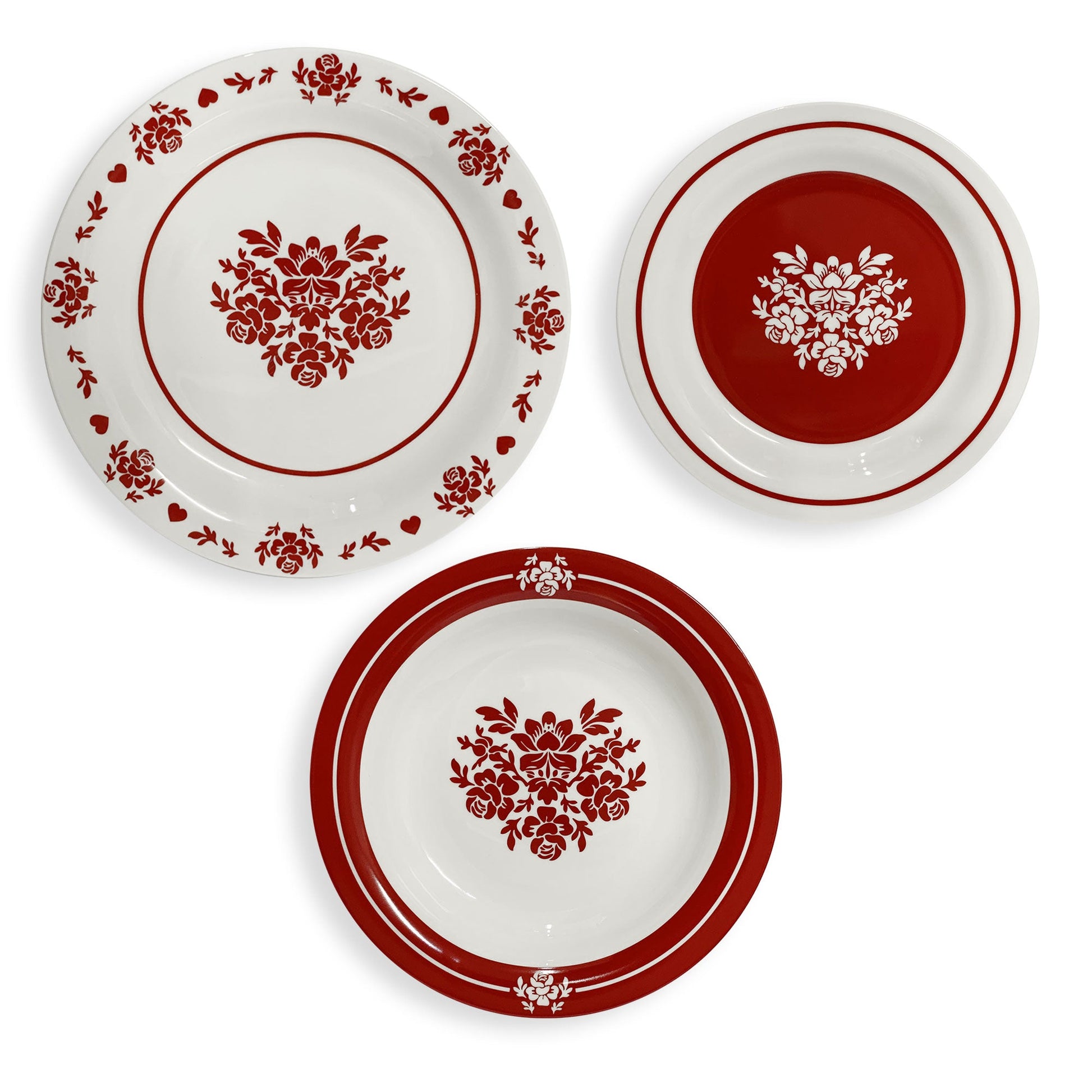 Servizio di 18 piatti in porcellana collezione Come nelle Favole in colore Bianco/Rosso 6 posti ideale per decorare la tua mise en place natalizia.