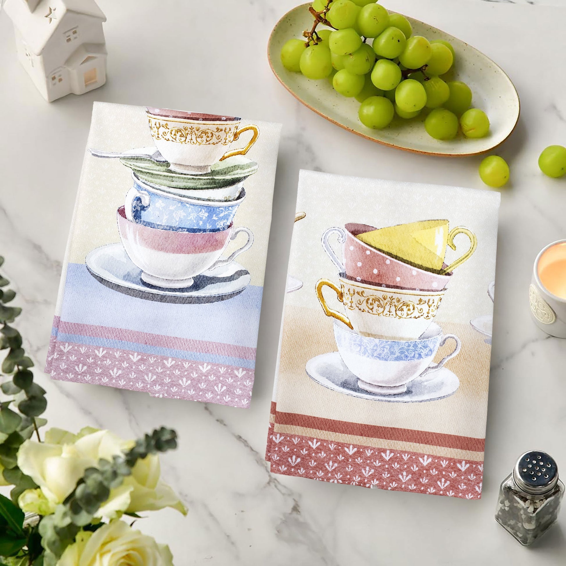 Scopri l'eleganza con il nostro set esclusivo di strofinacci da cucina, che catturano lo stile shabby chic attraverso una splendida stampa digitale. Questi canovacci in 100% cotone raffigurano delle tazzine e teiere.