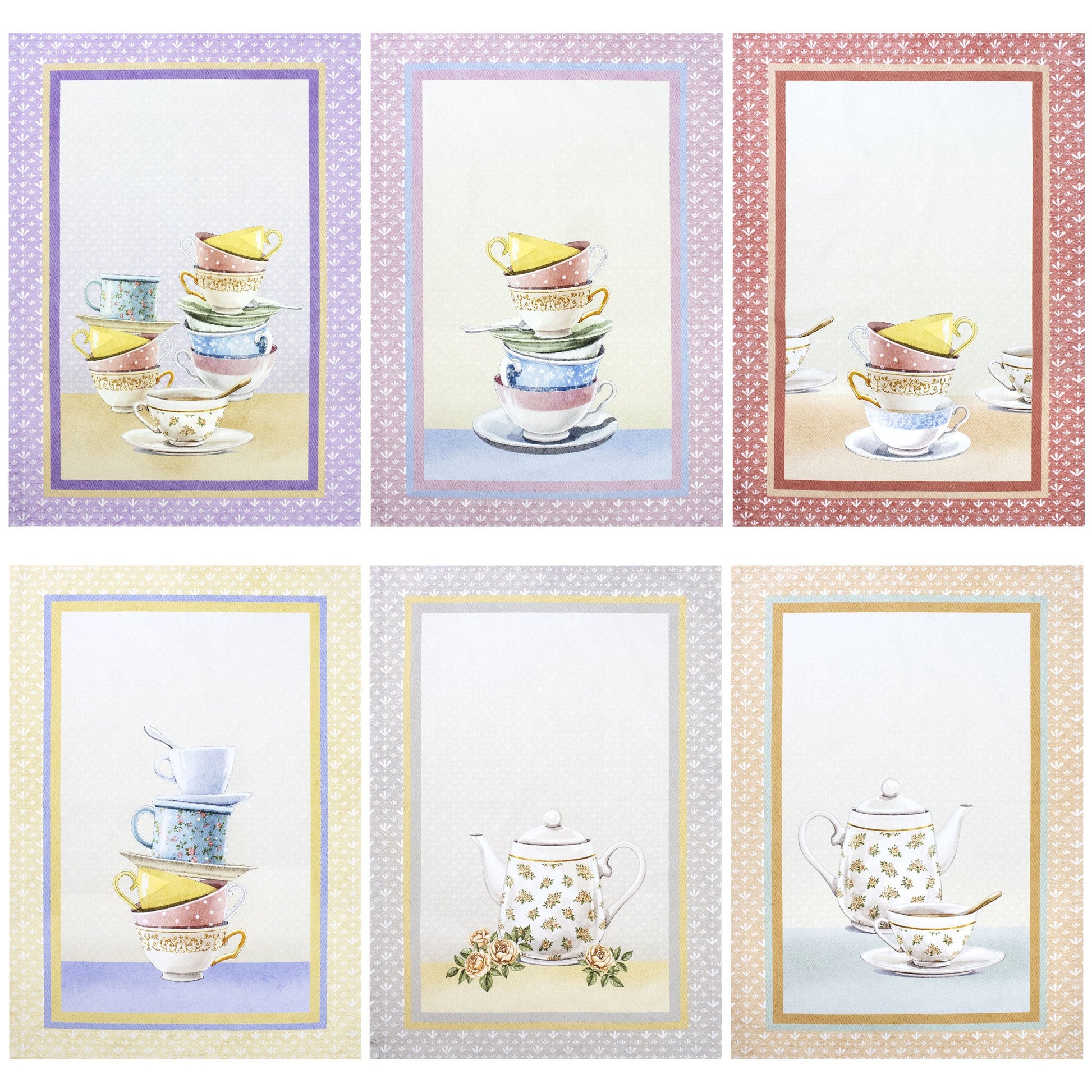 Set 6 Strofinacci cucina tazze e teiere canovacci Shabby Chic in cotone 6872
