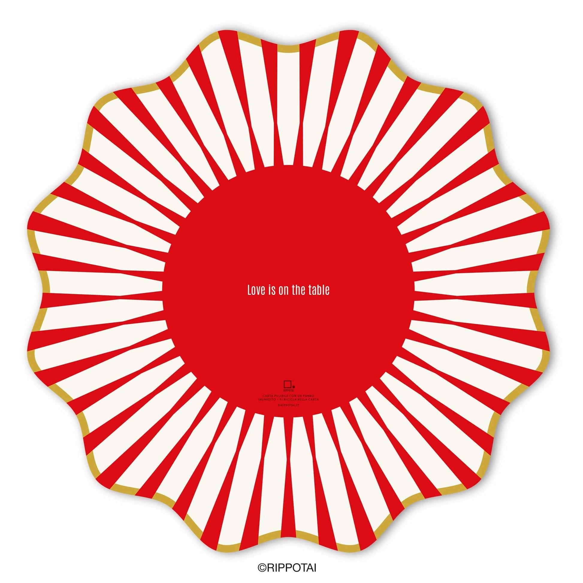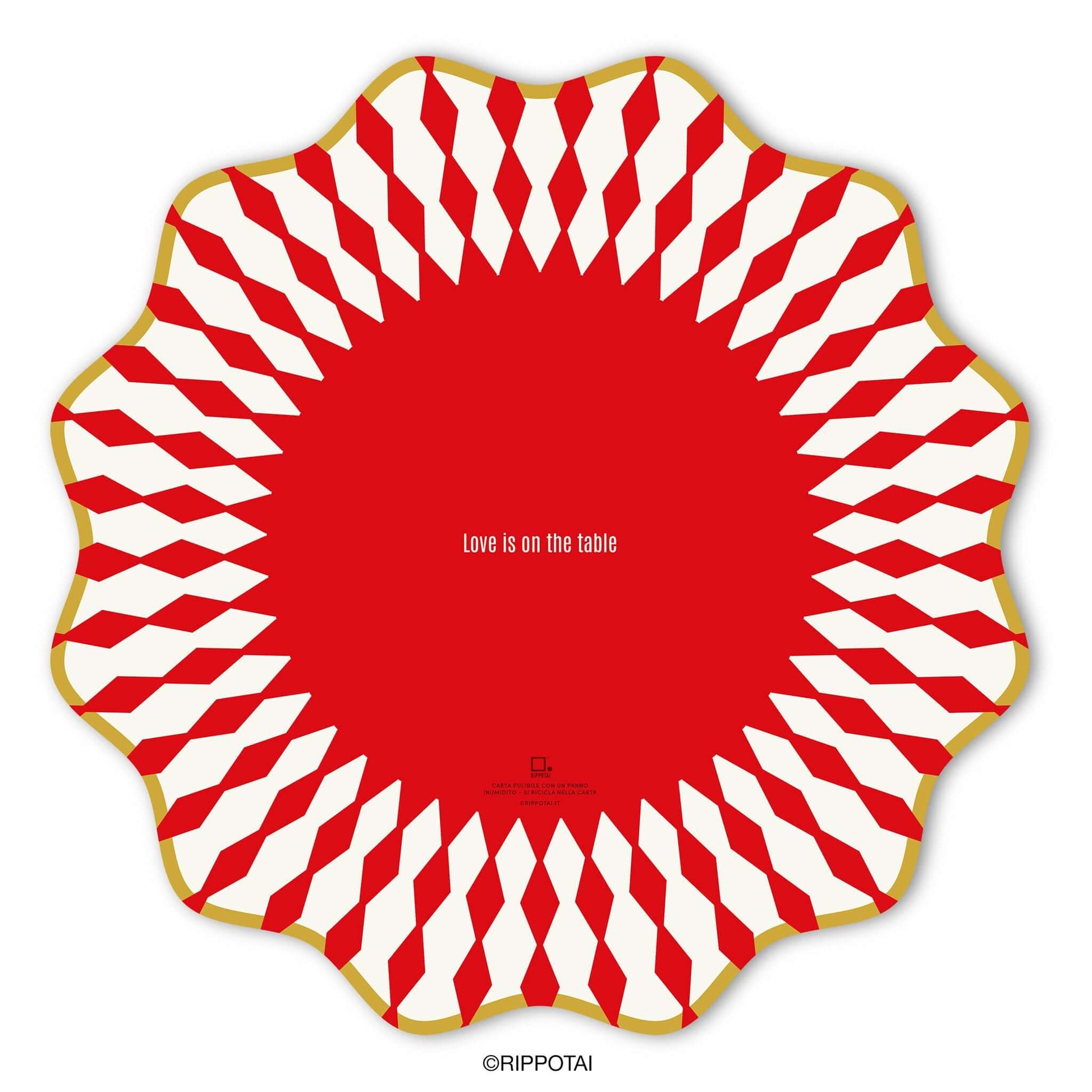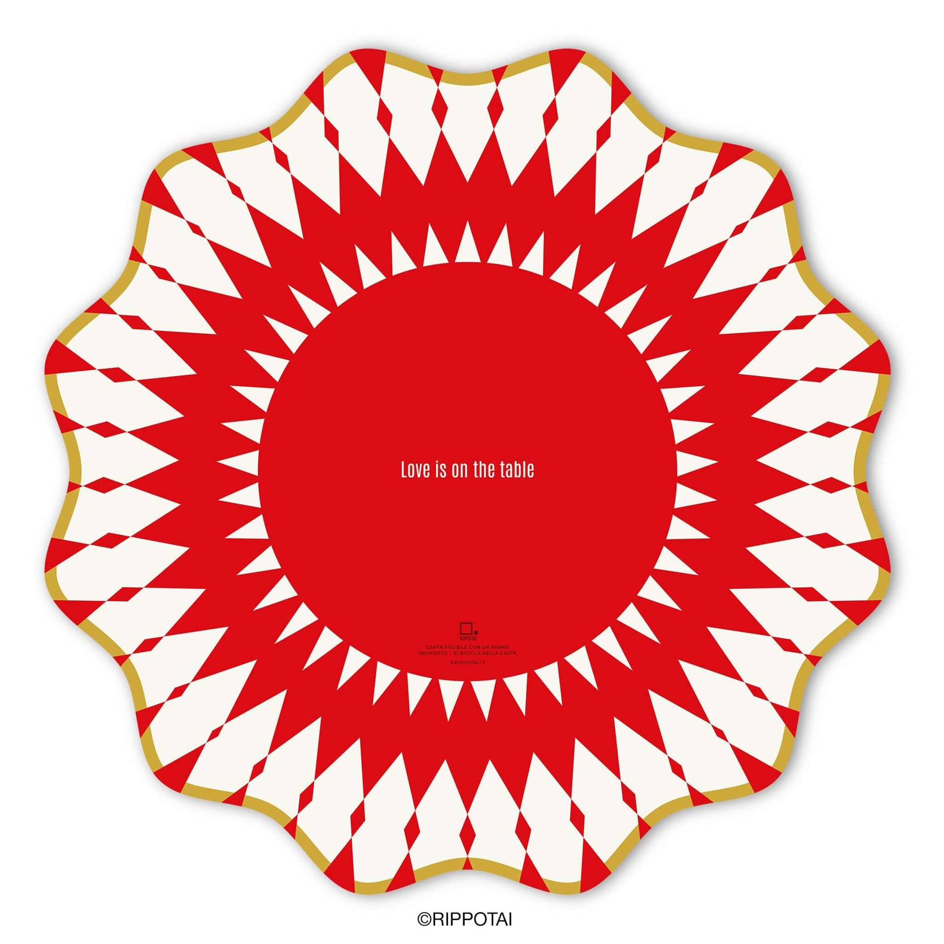 Red Gold: geometrie preziose con accenti rossi e dorati per tavole eleganti.