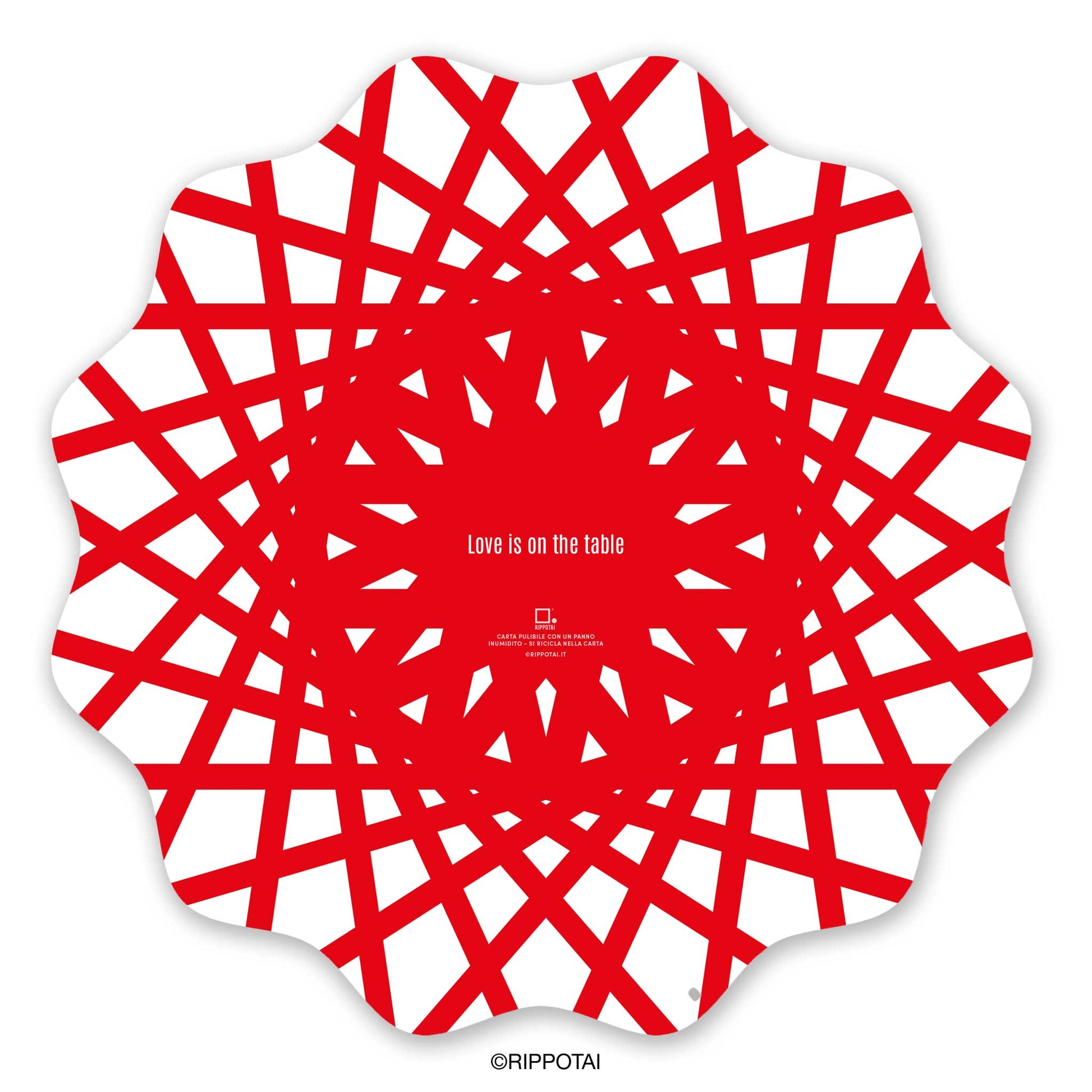 Ogni grafica racconta un’interpretazione del Natale firmata Rippotai, tra geometrie moderne e tonalità calde di rosso e avorio, ideali per chi ama decorare la tavola con gusto contemporaneo e attenzione alla sostenibilità.