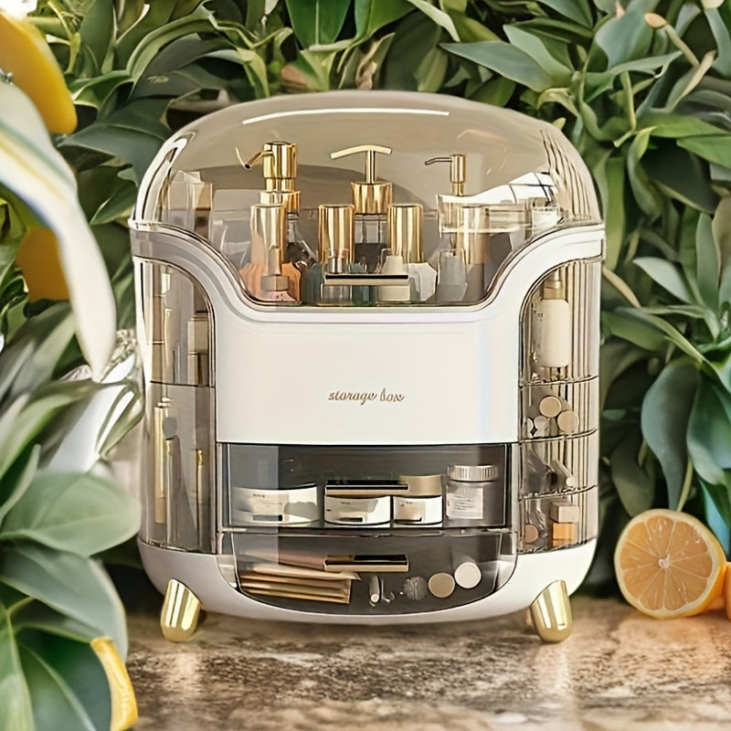 Spacious Multi-Layer Organizer for Cosmetics & Jewelry - Dustproof with Adjustable Drawers, Ideal for Makeup, Art Supplies & Office Essentials - Perfect for Bedroom, Bathroom, or Desk Organization (White & Green)