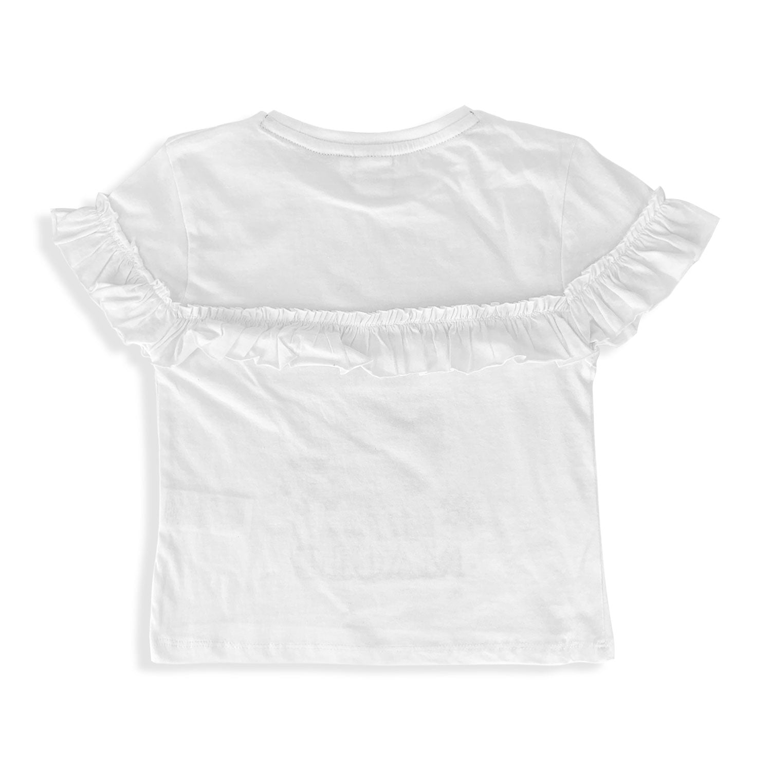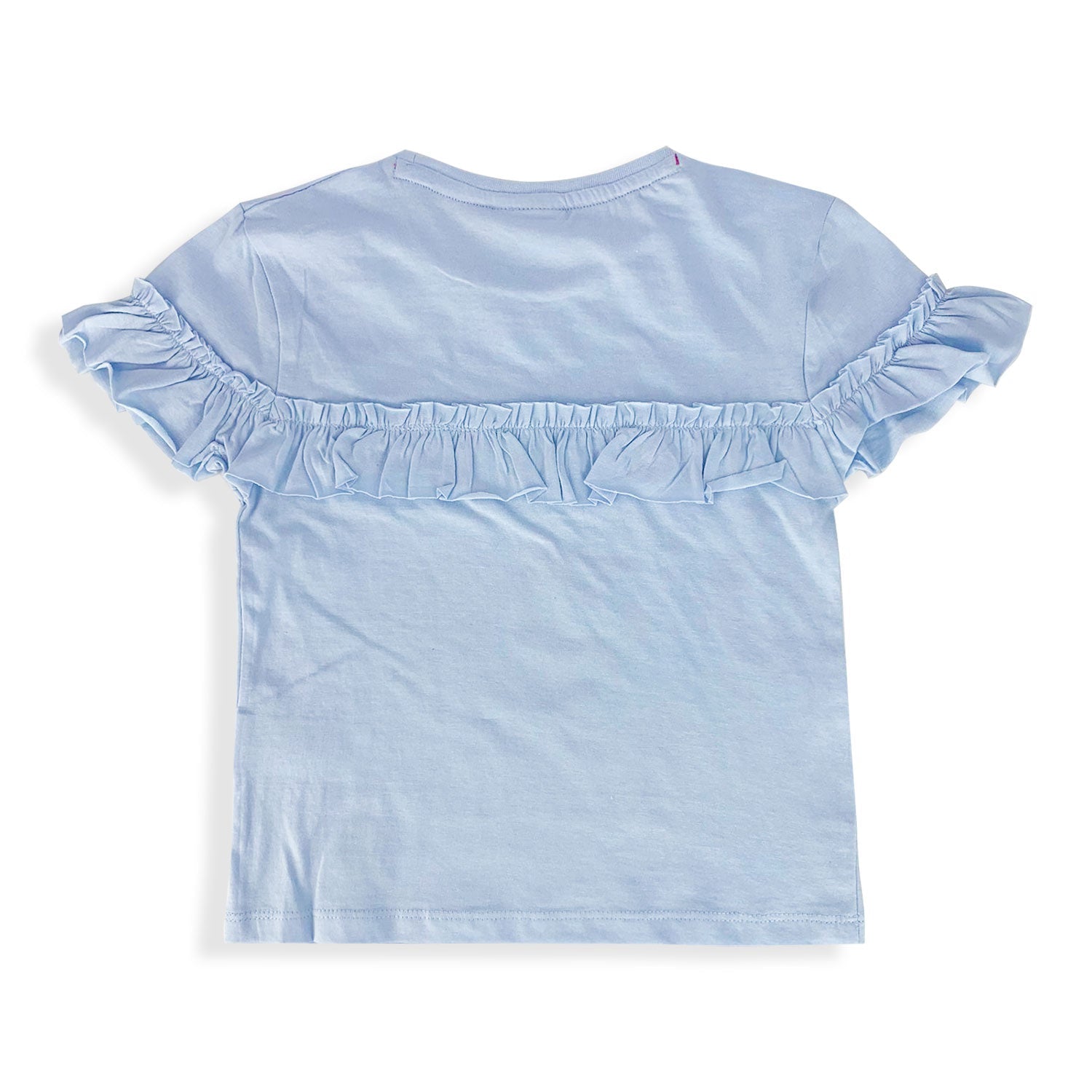 Maglia mezze maniche con stampa e strass sul davanti di Elsa e volant al centro e maniche.