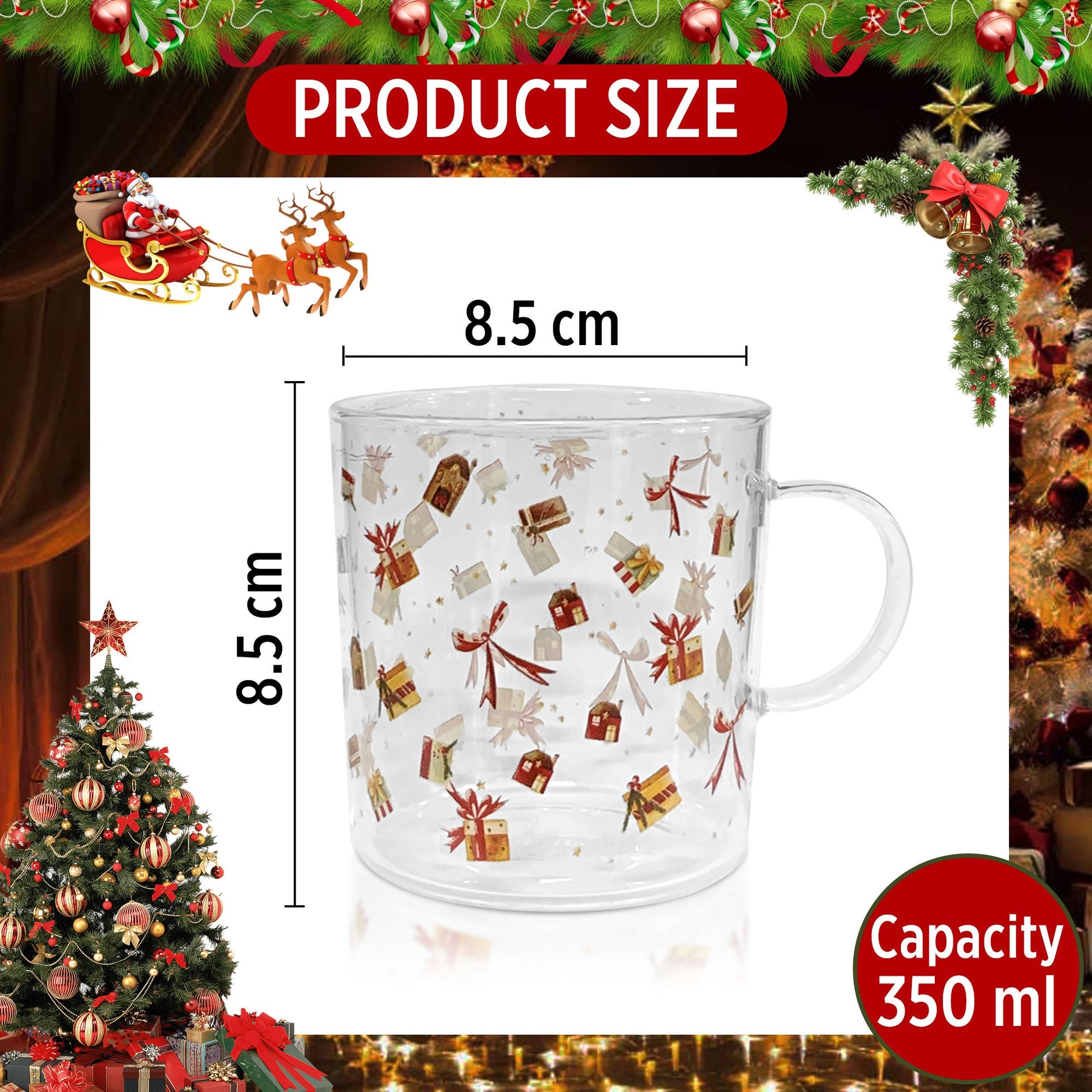 Ogni tazza, con un diametro di 8,5cm e un'altezza di 8,5cm è perfetta per versare le bevande calde durante le fredde giornate invernali. Con una capacità di 350ml, queste tazze sono ideali per caffè, cioccolata calda o tè aromatico.