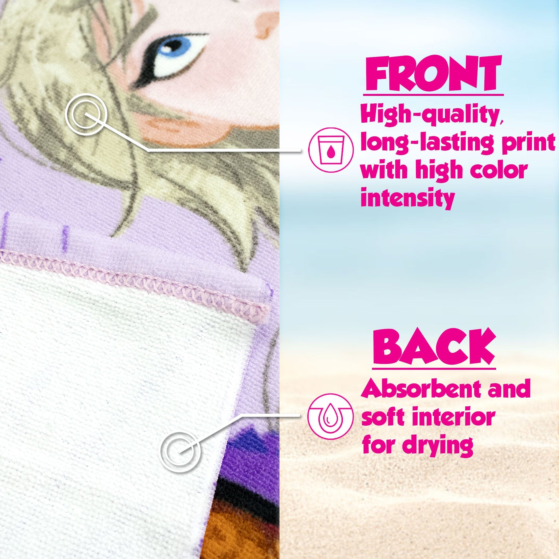 La stampa incantevole di Elsa e Anna aggiunge un tocco di magia e fantasia a ogni momento in spiaggia o in piscina. Le dimensioni di 70x137cm offrono spazio sufficiente per avvolgerti comodamente dopo un tuffo rinfrescante o distendersi al sole con stile.