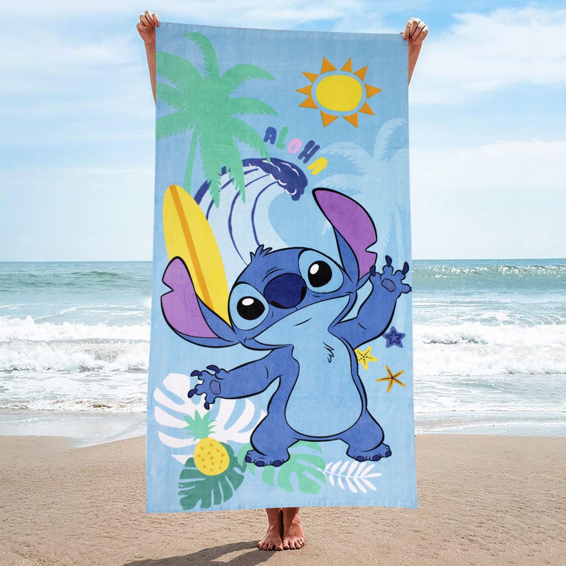 Aggiungi un tocco di divertimento e freschezza ai tuoi momenti di relax con il Telo Mare di Stitch, il compagno ideale per le tue avventure estive!