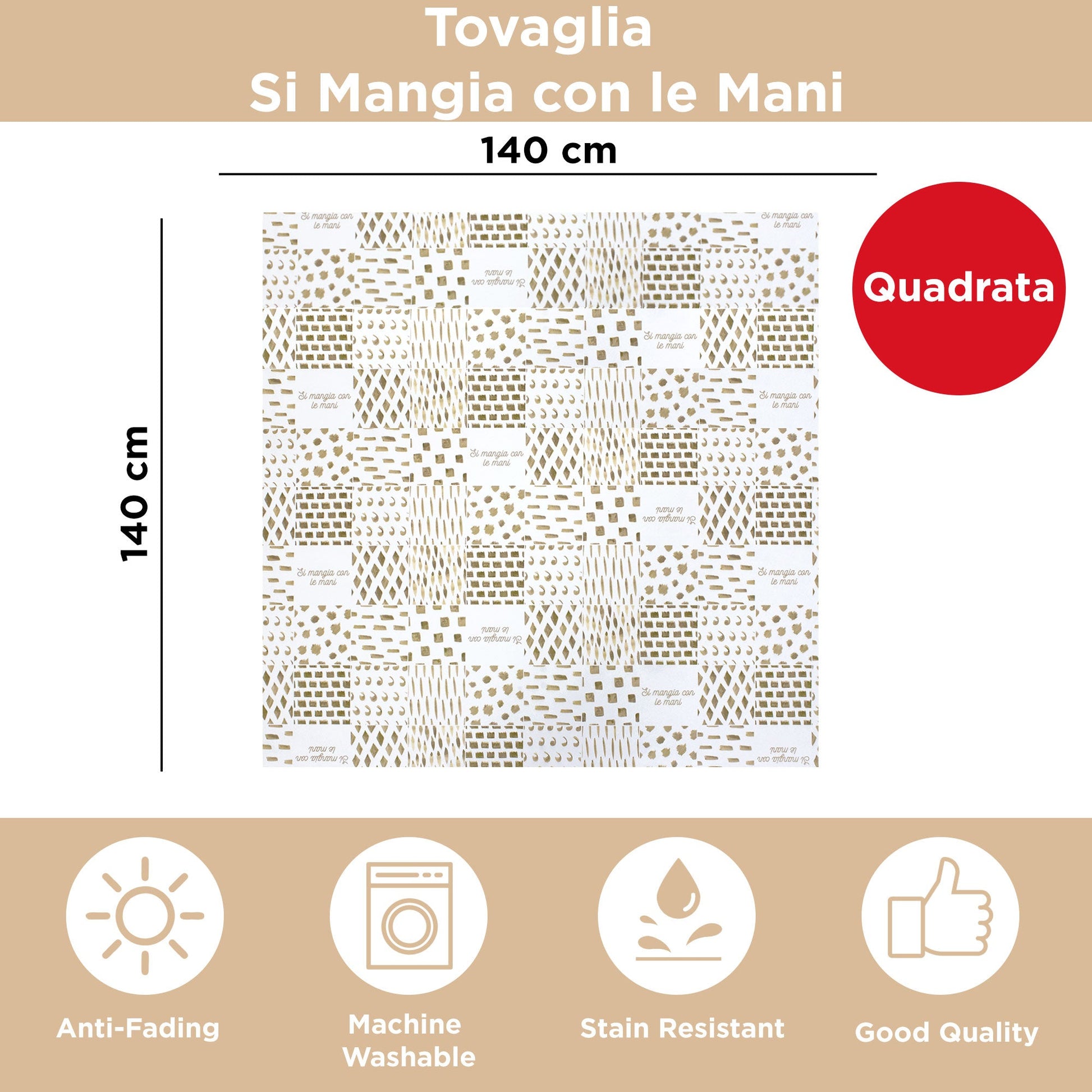 Con dimensioni di 140x140cm, si adatta perfettamente a tavoli quadrati, combinando funzionalità e design per un risultato sorprendente.