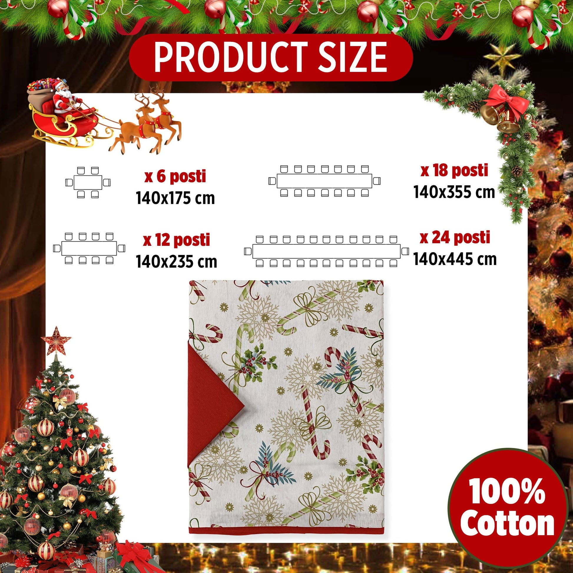 Tovaglia Natalizia servizio da tavola + tovaglioli Preziosa Home 24 posti 6423