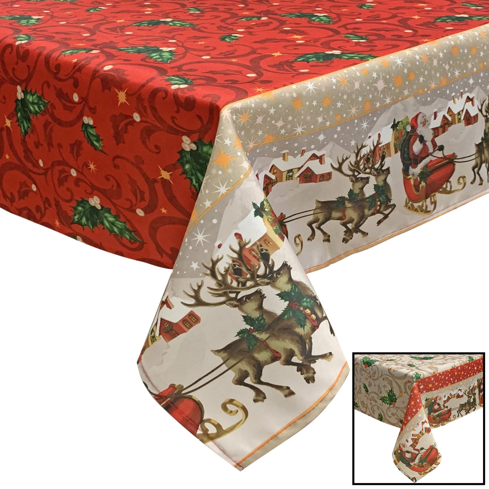 La tovaglia da 135x170cm è realizzata in resistente tessuto in poliestere, che la rende perfetta per l'uso quotidiano. La stampa con motivi natalizi aggiunge un tocco di festa all'ambiente.