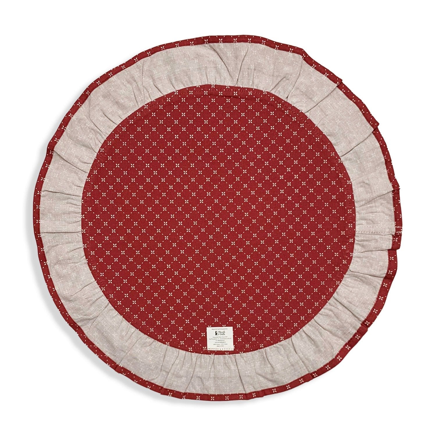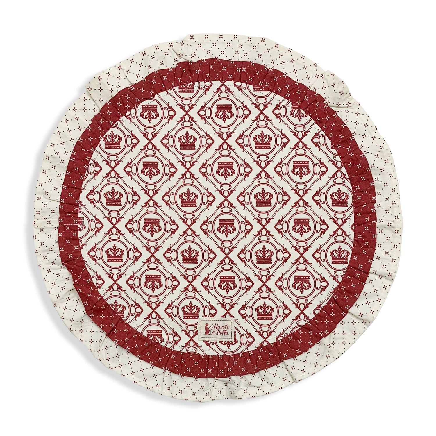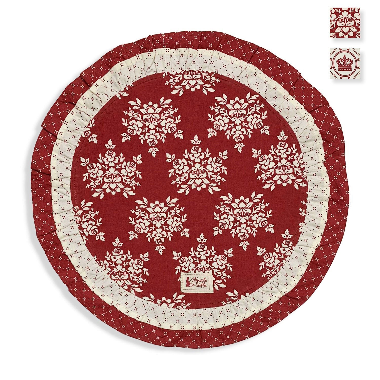 Tovaglietta americana tonda con doppia balza double face per colazione natalizia collezione Come nelle favole , con coroncine e fiori.