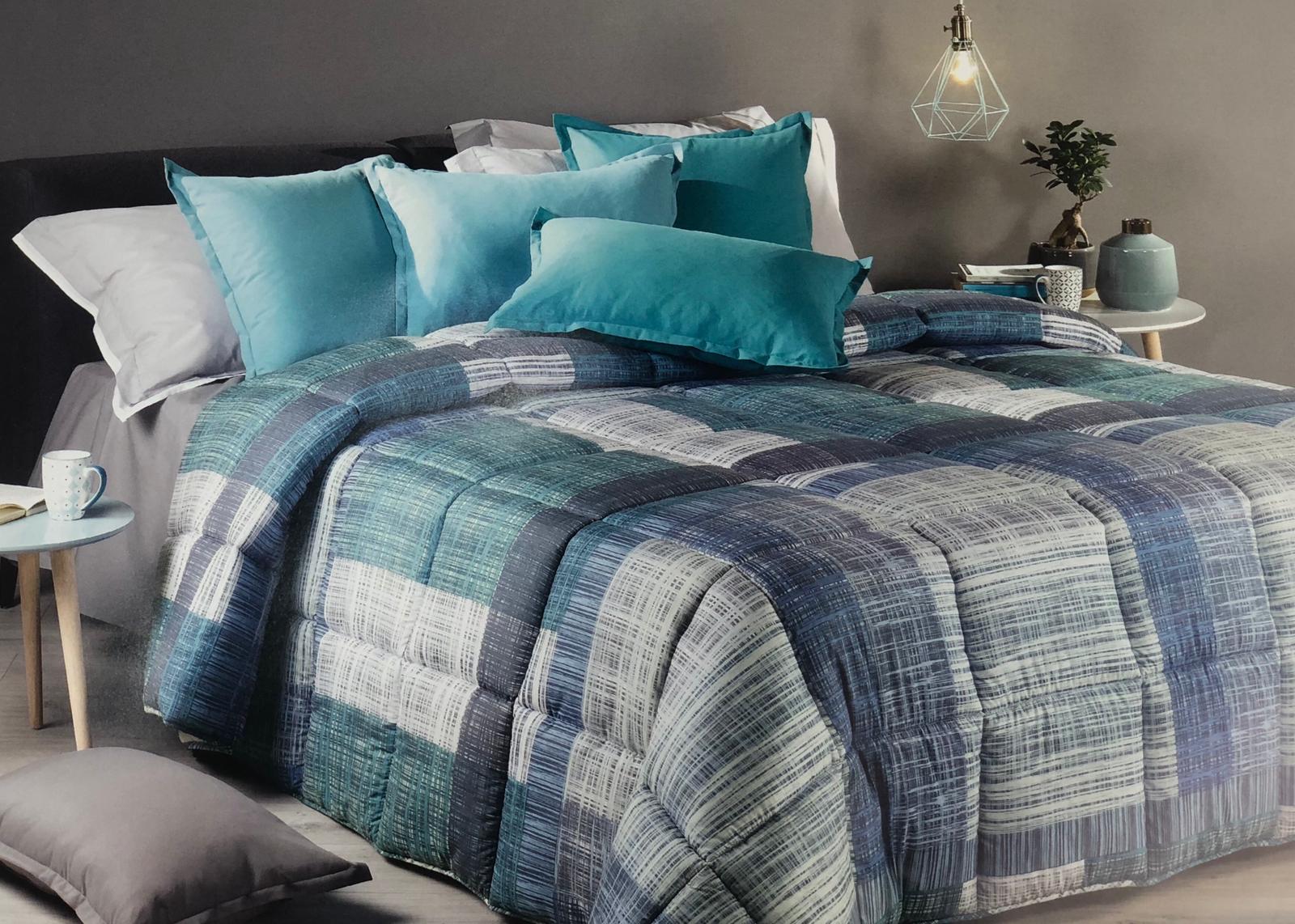 Trapunta CALEFFI con stampa Microfibra e imbottitura in fibra di poliestere anallergica.