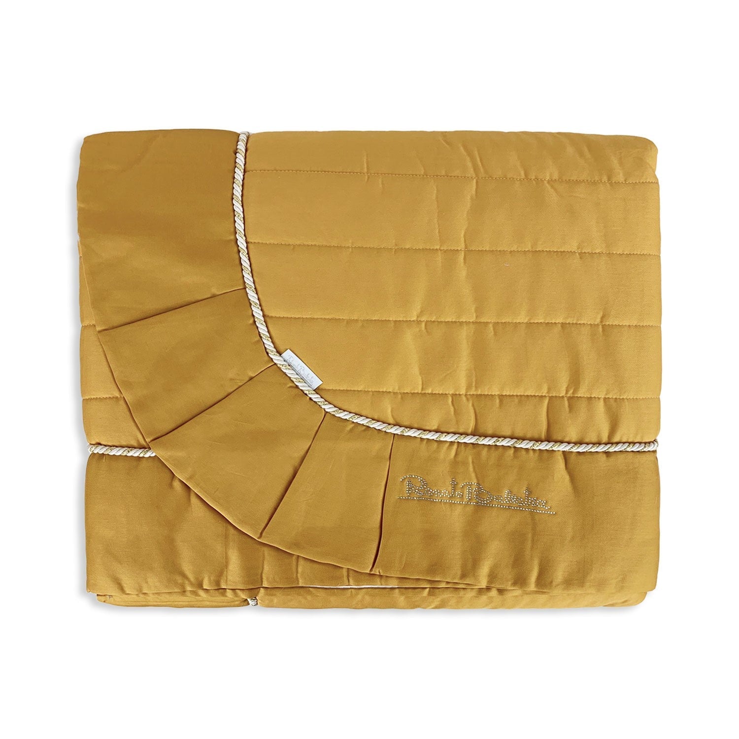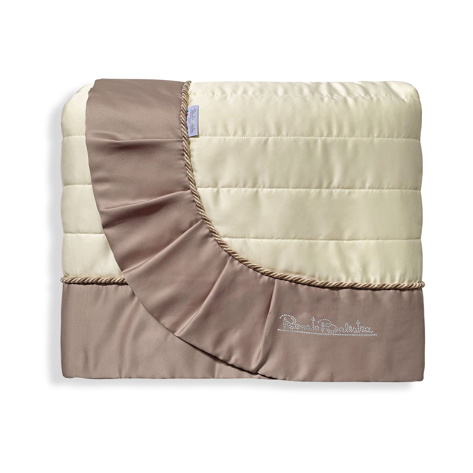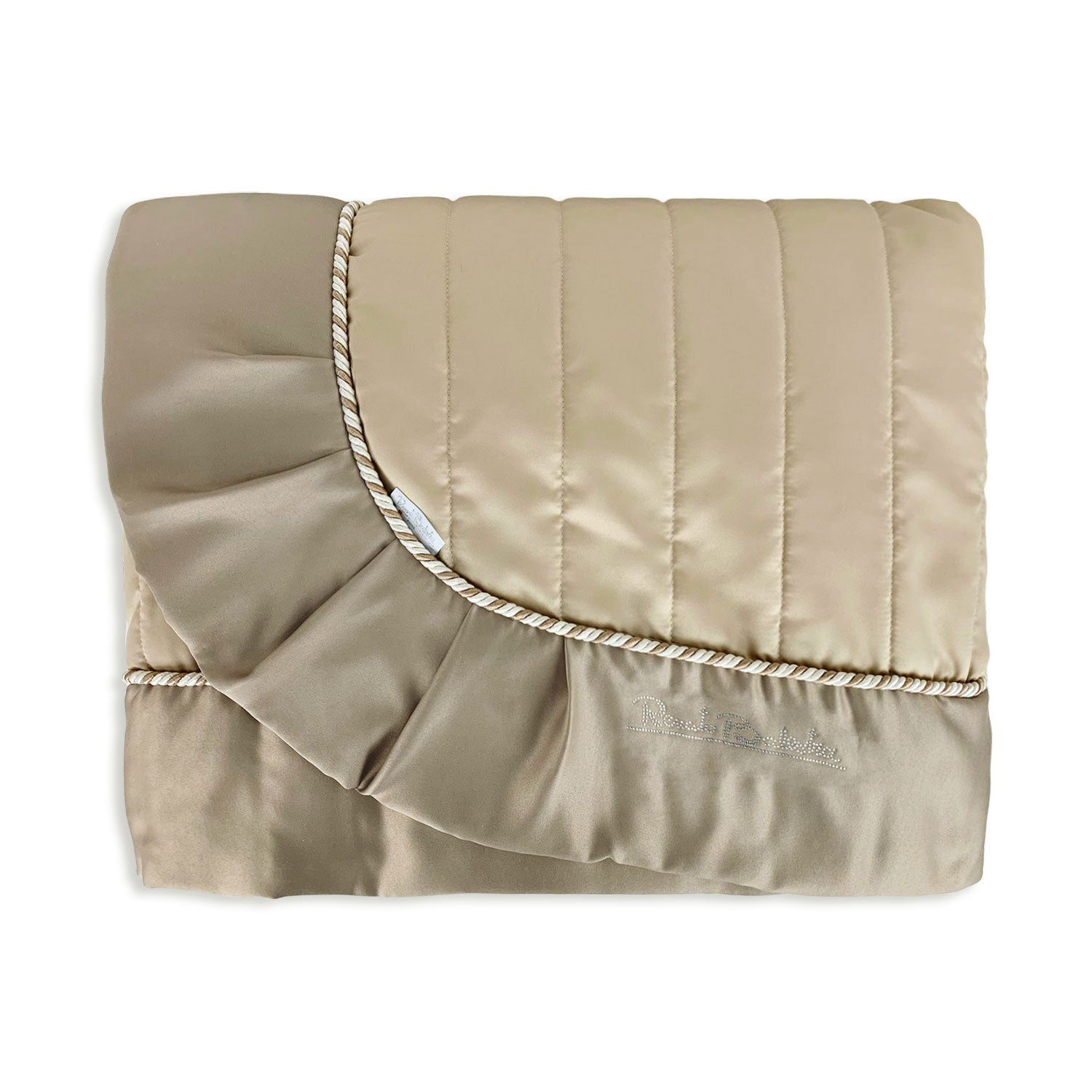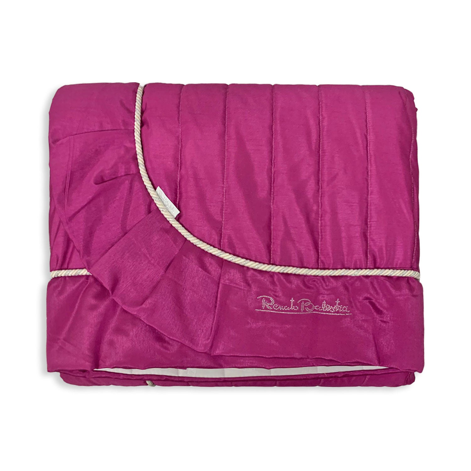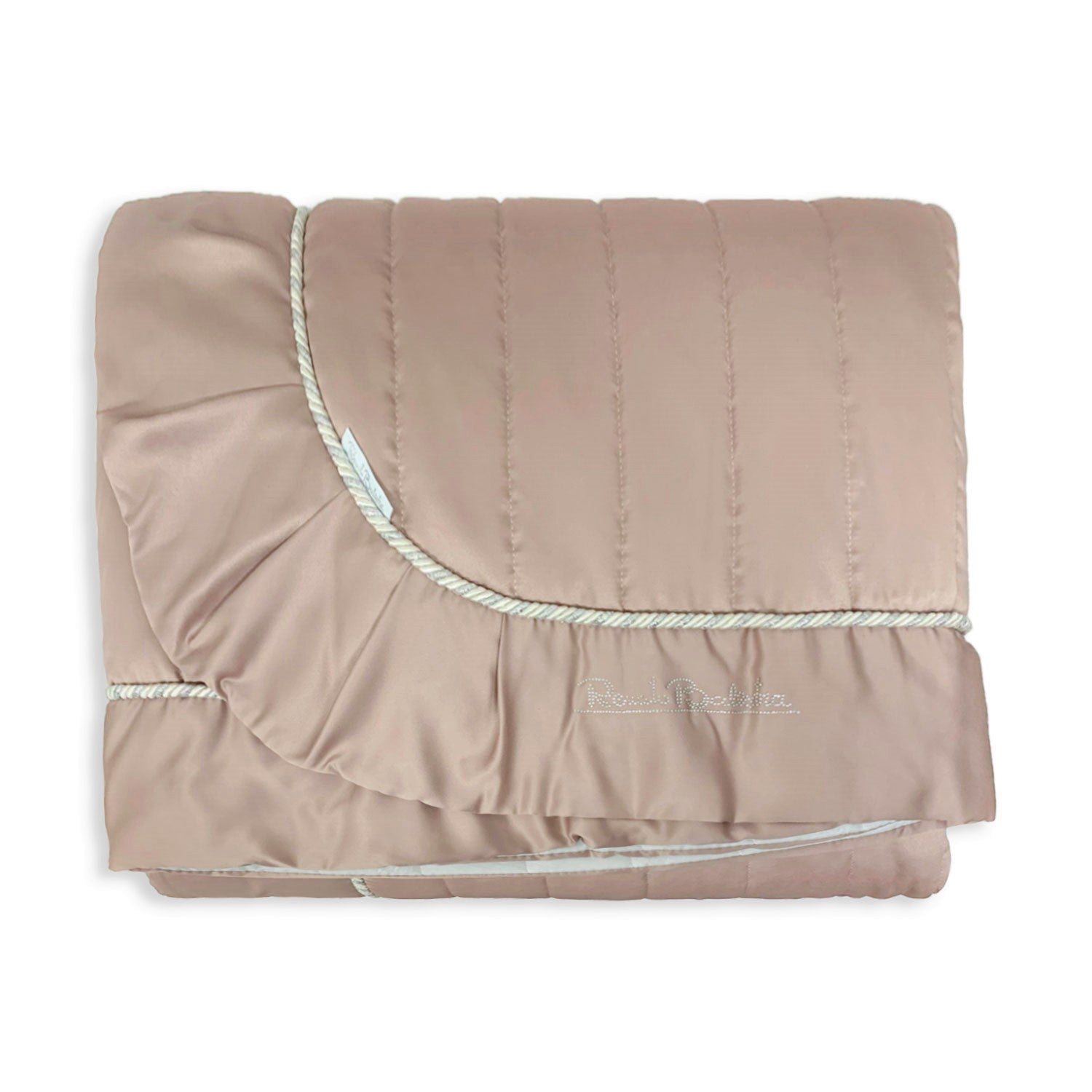 Copriletto trapuntato Renato Balestra Ludovica con cordoncino e scritta strass sul bordo.