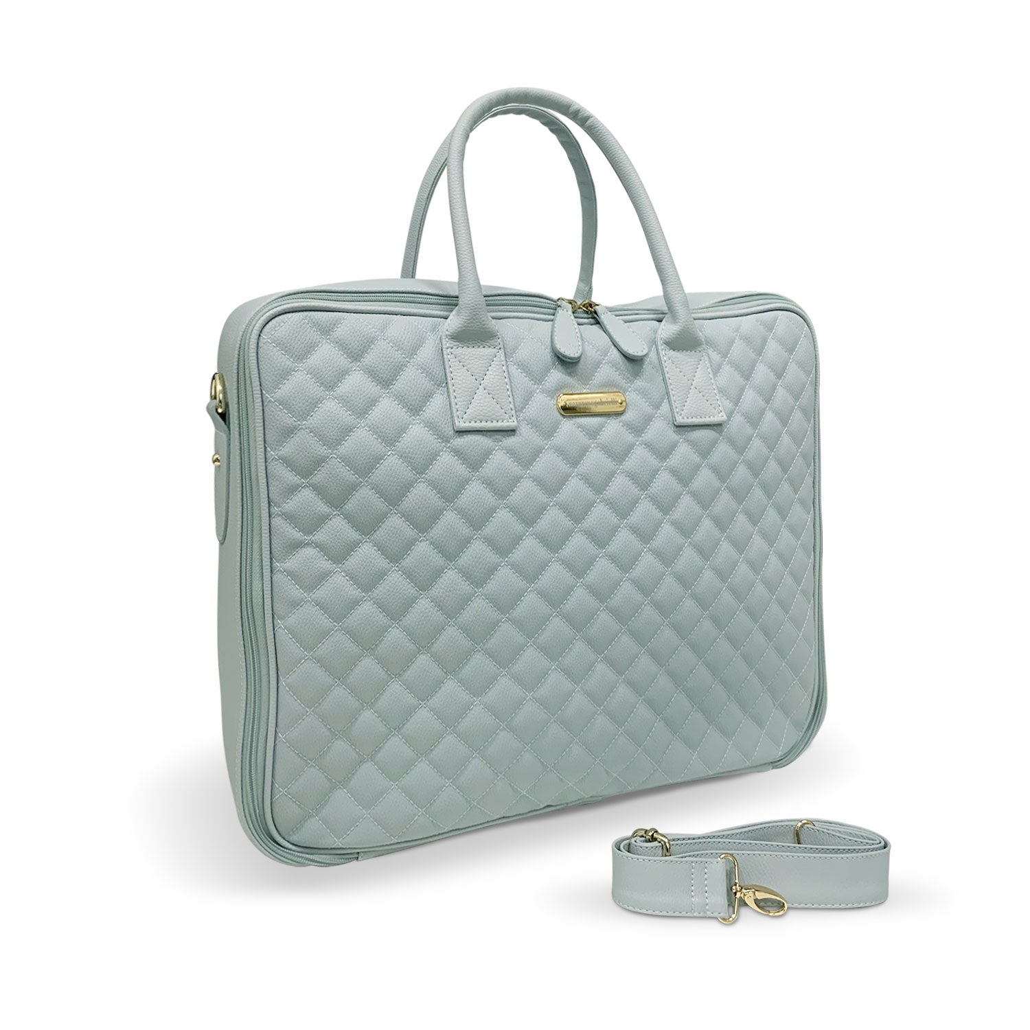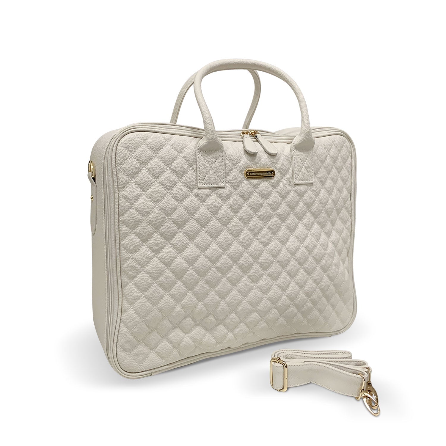Valigia con tracolla e manici per nascita in ecopelle di Nazareno Gabrielli.