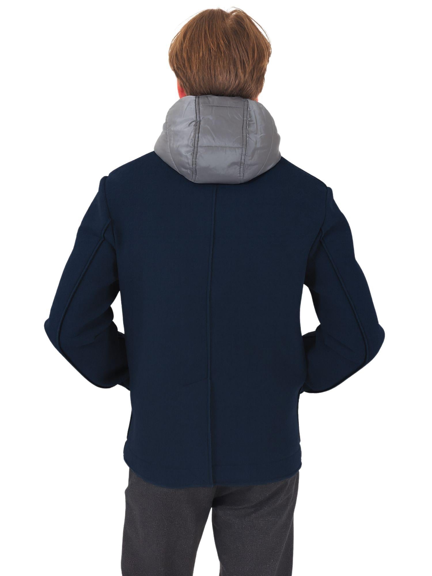 Giubbino uomo doppio petto con cappuccio, modello in panno con due tasche laterali