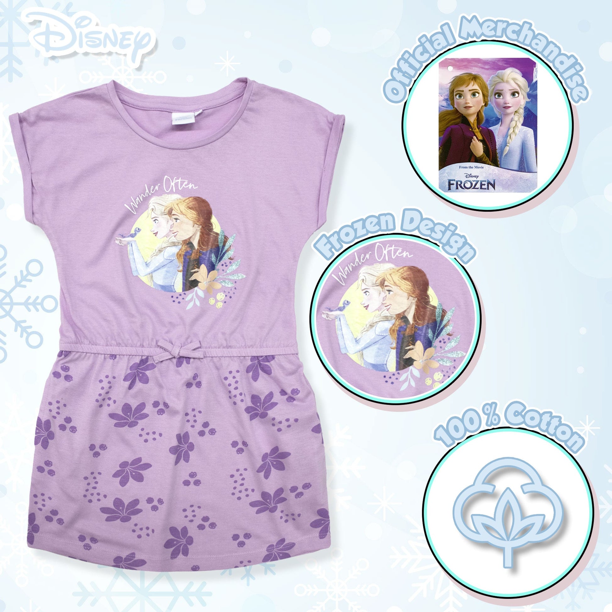 Porta la magia del Regno di Ghiaccio nel guardaroba della tua piccola con questo adorabile abito di Frozen in 100% jersey di cotone, leggero e confortevole. Perfetto per giornate spensierate e avventure estive, questo abito incanta con la sua stampa di Elsa e Anna sulla parte superiore, arricchita da glitter che catturano la luce con ogni movimento.