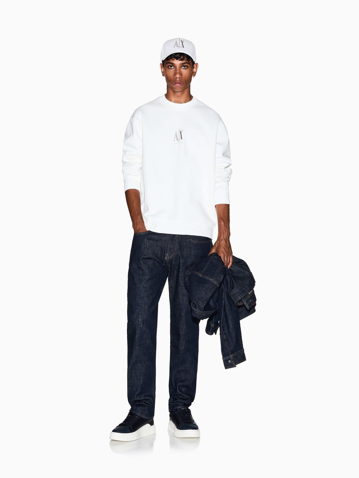 Armani Exchange Felpa Bianca Girocollo Da Uomo Con Logo Ricamato