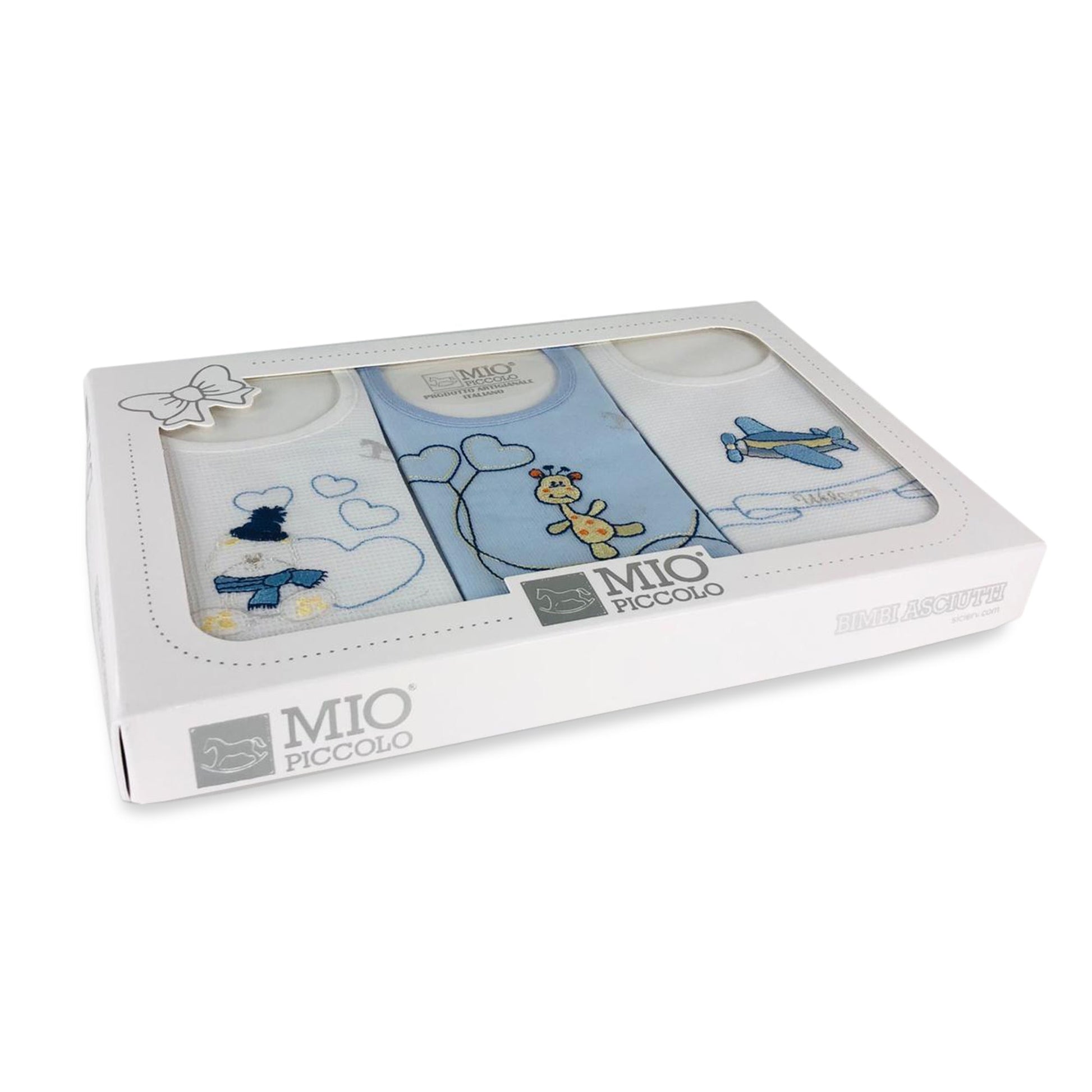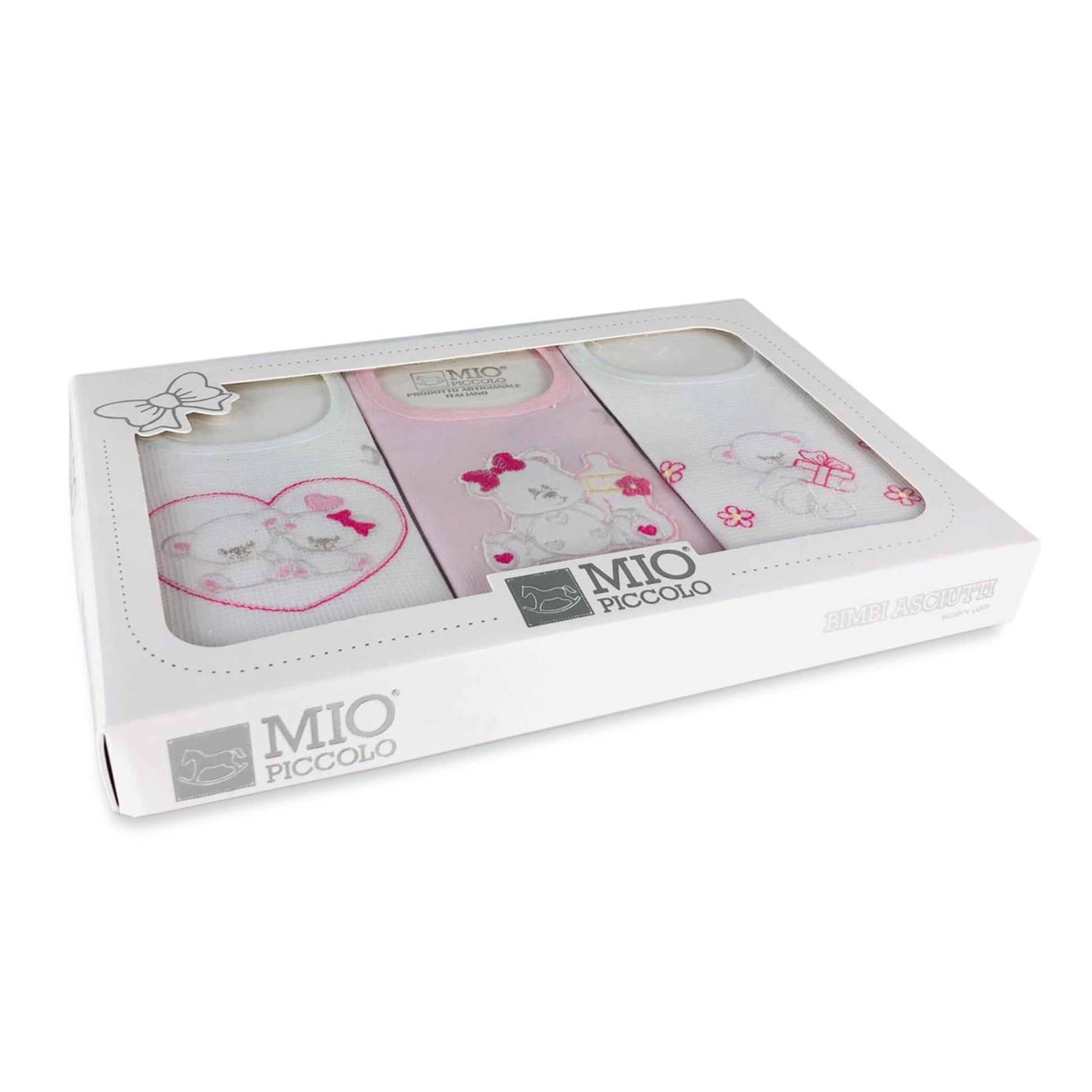 Bavaglino neonato bambino Mio Piccolo 3 bavaglini ricamati in 100% cotone 3032
