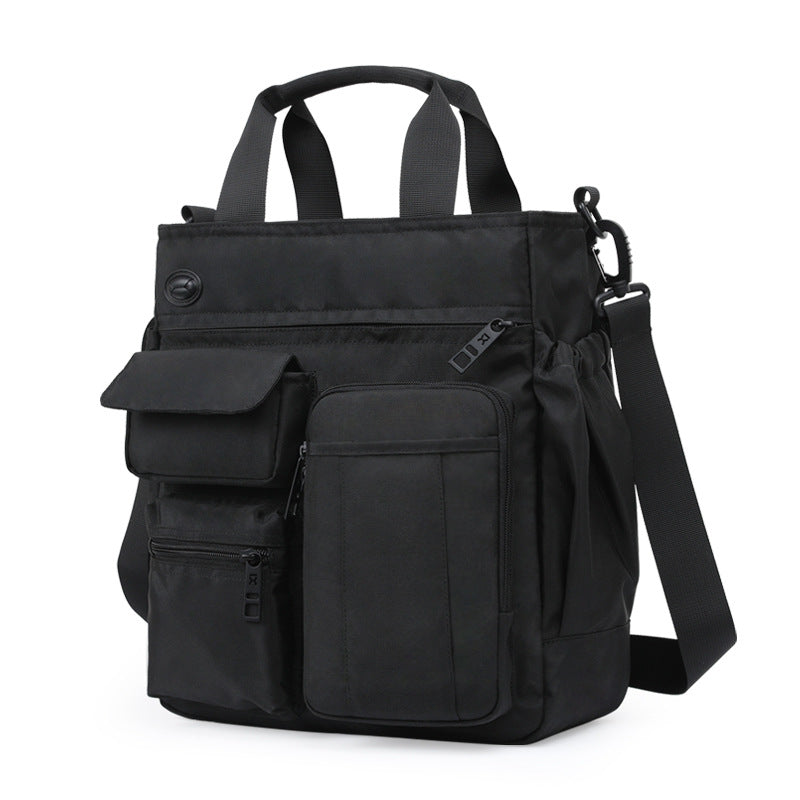 Struttura: tasca principale espandibile, tasca multifunzione con cerniera, tasca frontale per batteria
