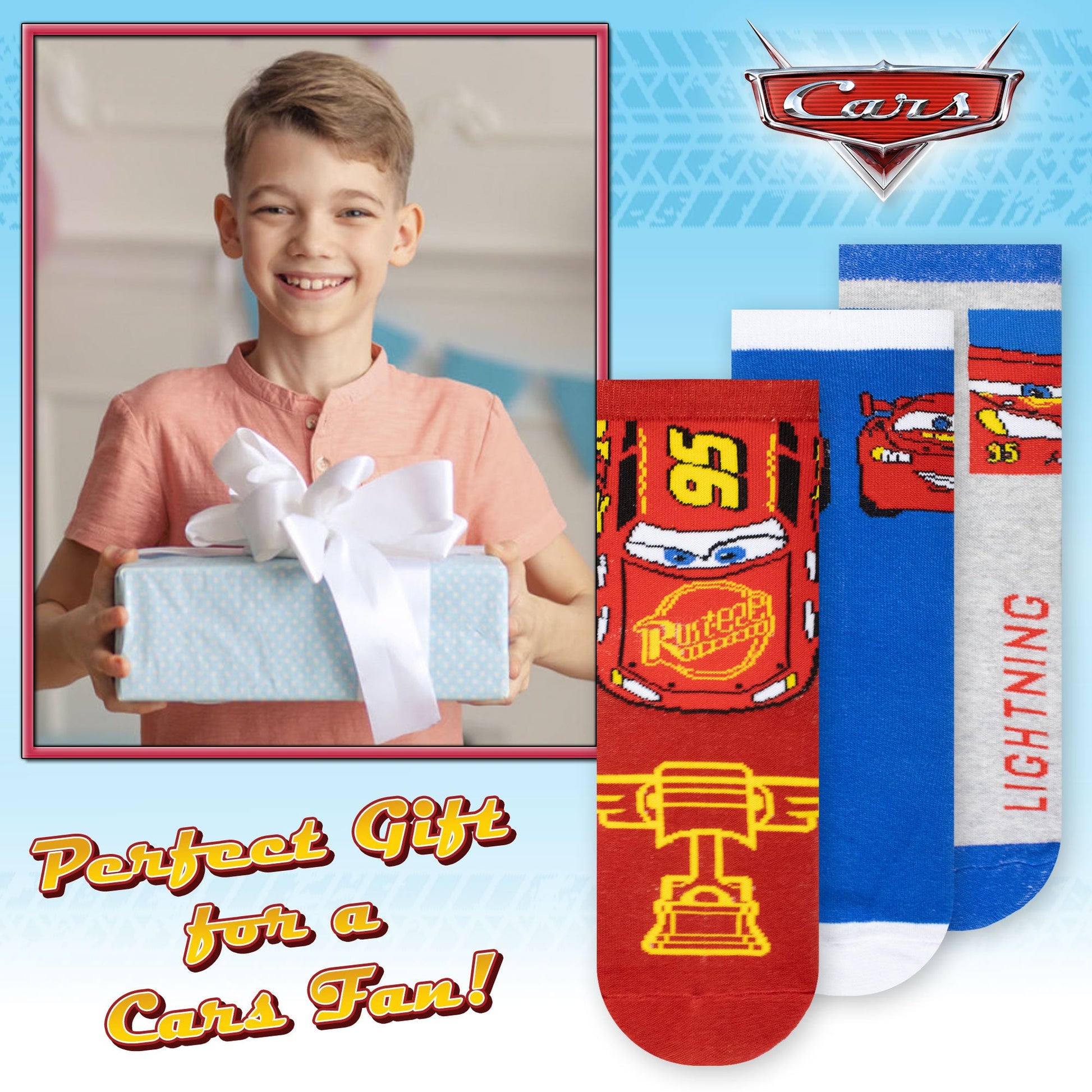 Il set di calzini Disney Cars è perfetto per i piccoli fan di Saetta McQueen! Ogni confezione contiene 3 paia di calze colorate sopra la caviglia, ognuna con una stampa diversa del celebre bolide rosso.