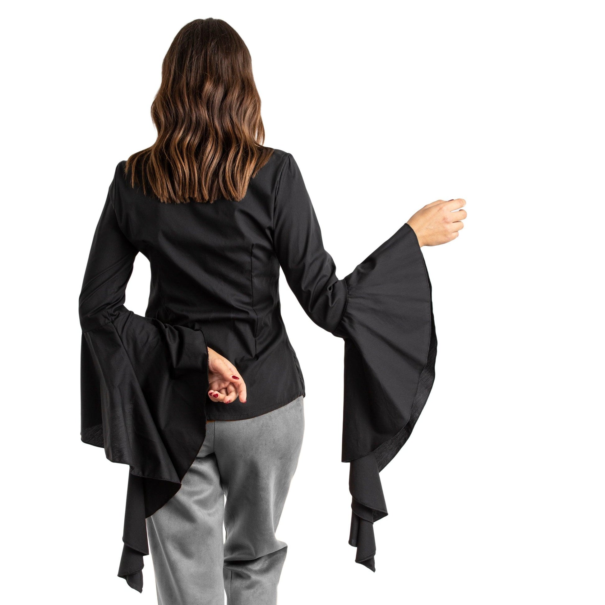 Camicia donna maniche lunghe in cotone con volant made in Italy 1487