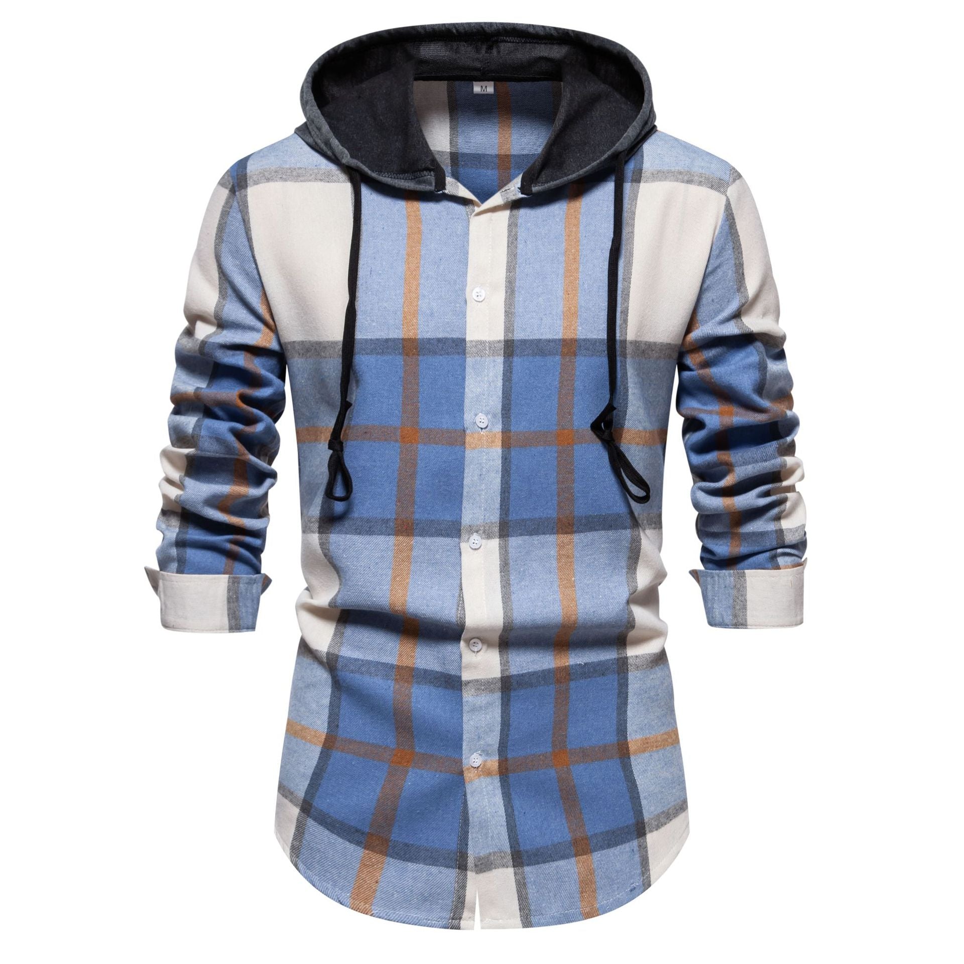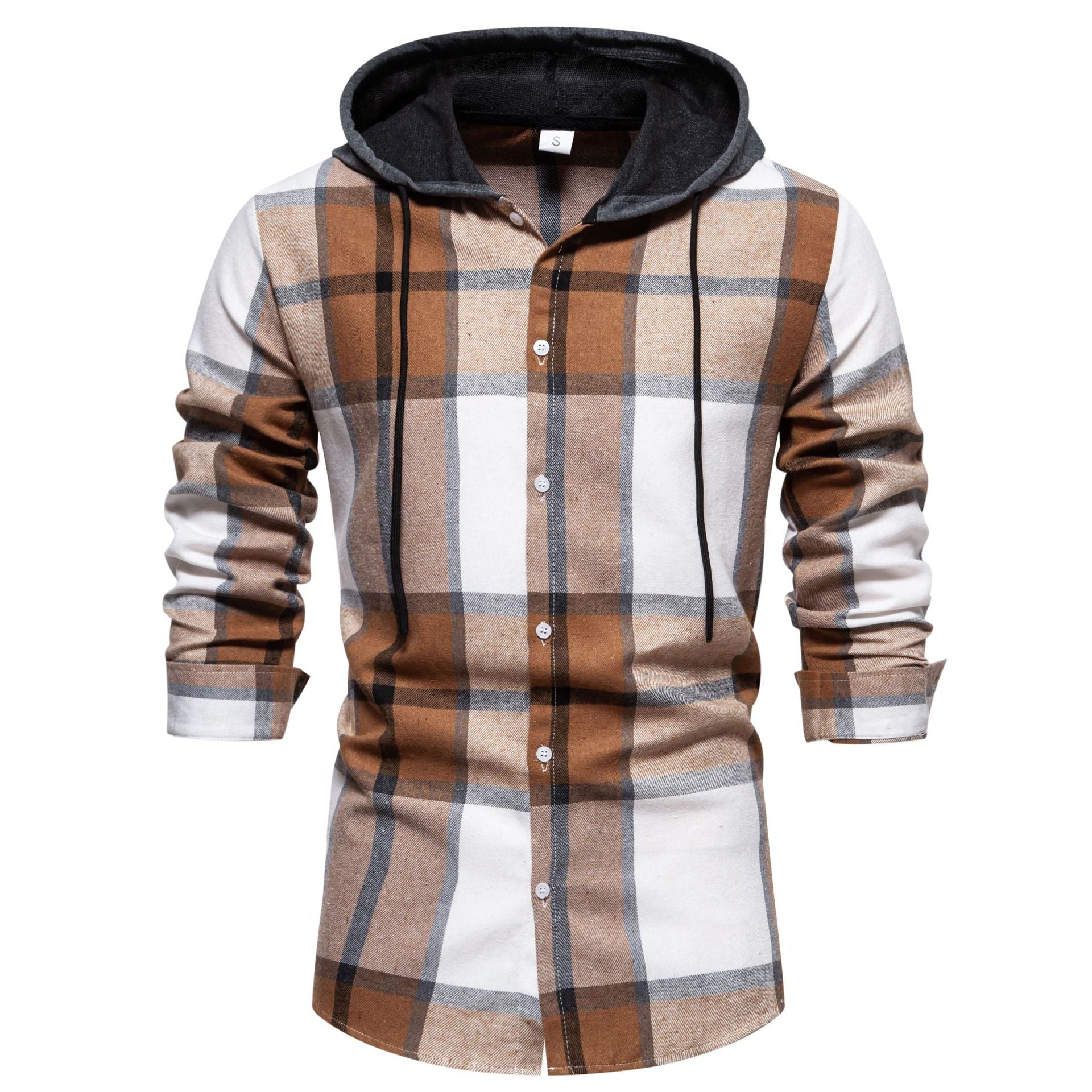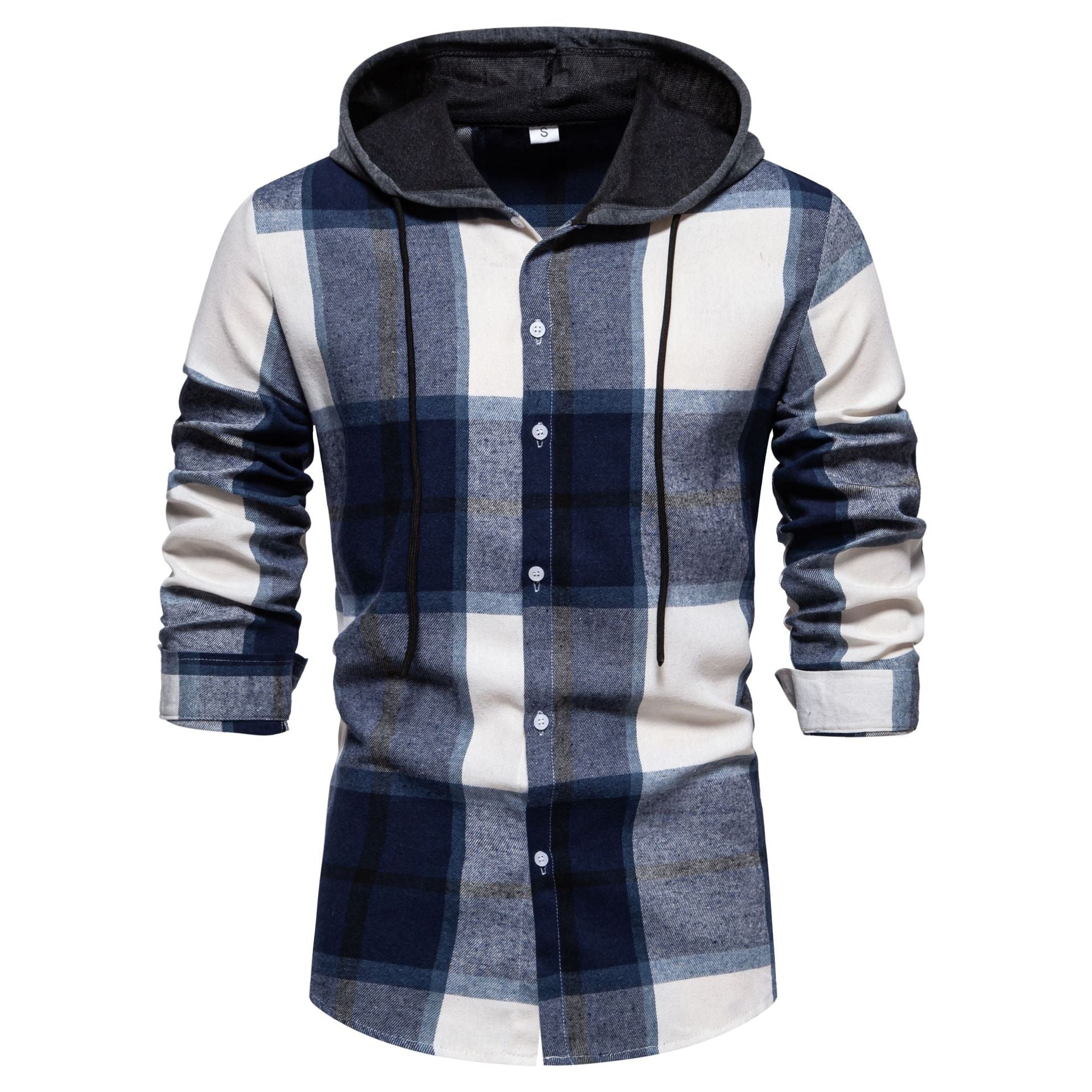 Casual Hooded Men's Plaid Long Sleeve Shirt