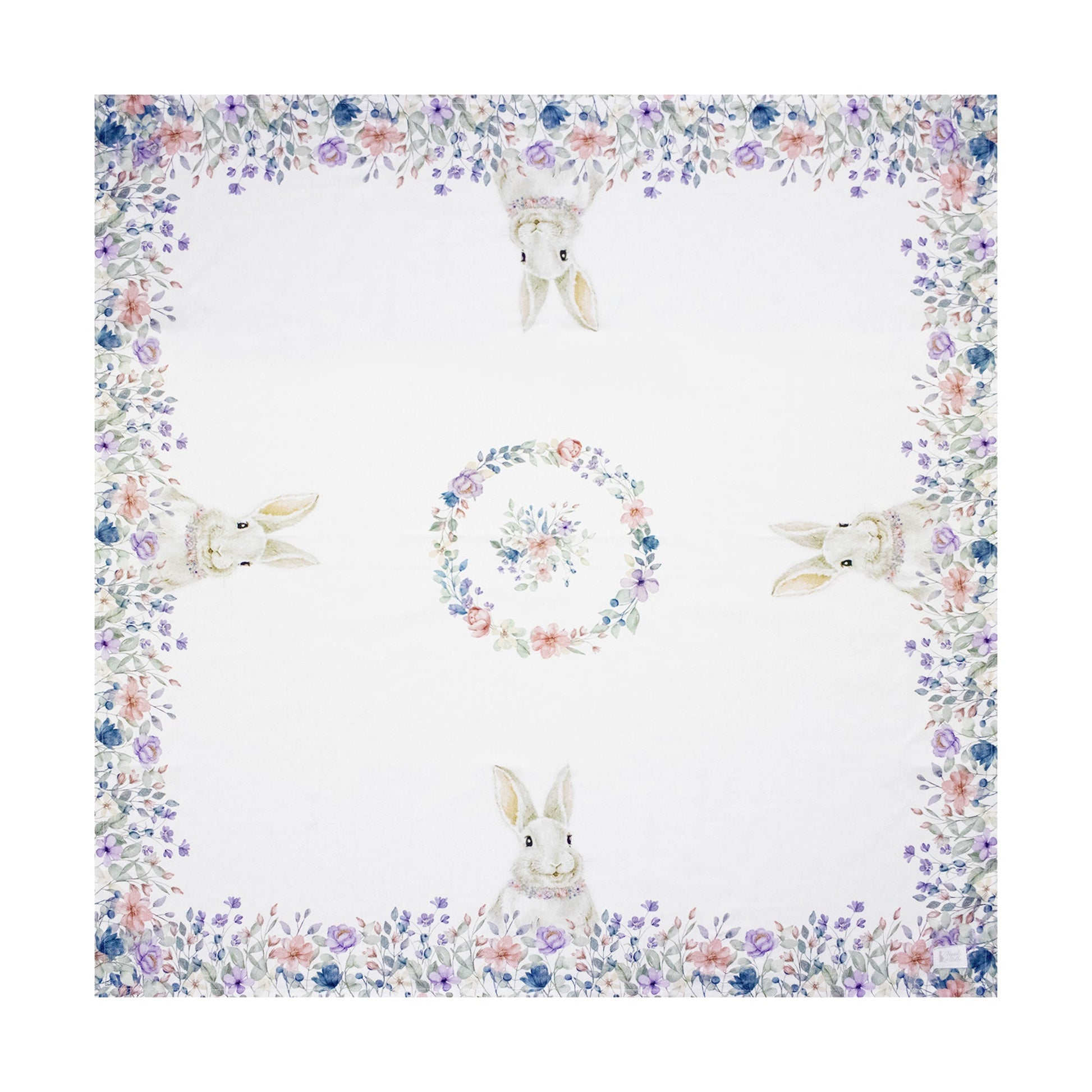 Il suo delicato motivo floreale, arricchito da adorabili conigli dai colori tenui, trasforma ogni momento a tavola in un'esperienza incantevole. Ogni dettaglio è curato con maestria, creando un'opera d'arte tessile che cattura lo spirito della Pasqua.