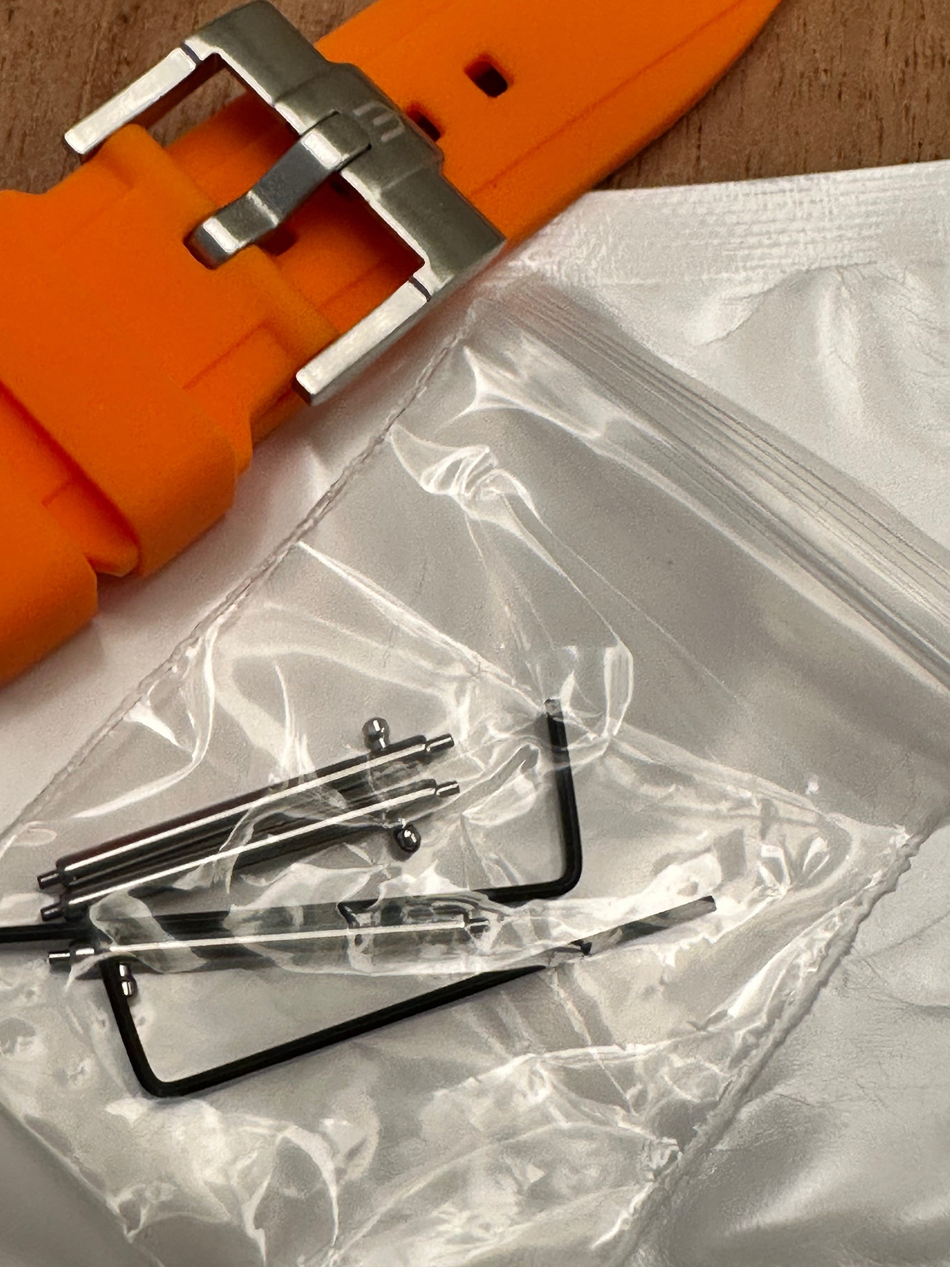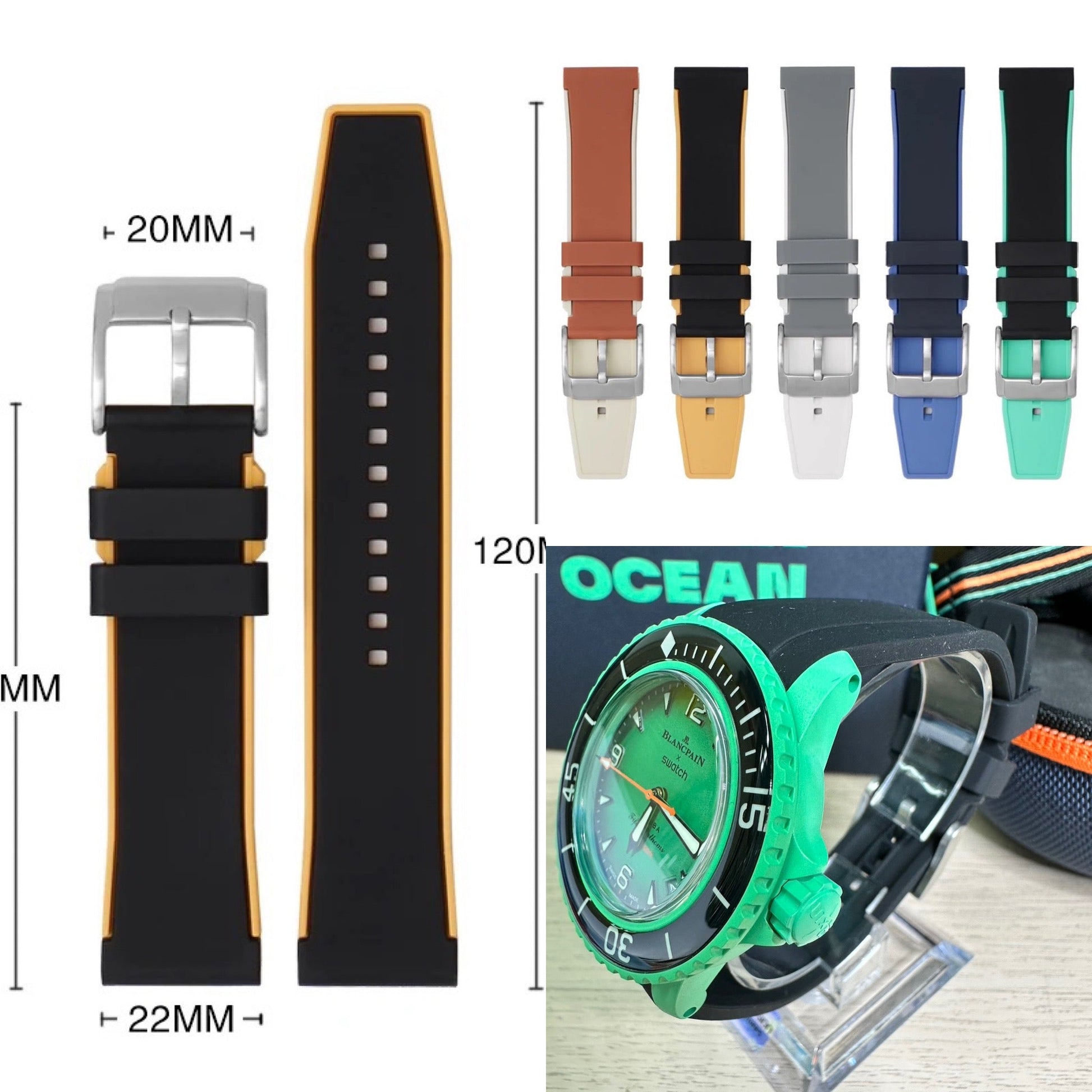 Cinturini mod. BLANC in morbido ed avvolgente silicone creati appositamente per tutti i modelli di orologi con anse da 22mm. Completi di chiavette apposite per montarli. Vanno bene per molti modelli di orologi come ad esempio BlancpainXSwatch