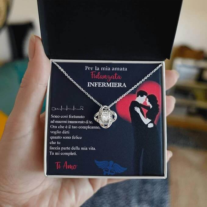Falle il regalo che simboleggia il tuo nodo d'amore. Caratterizzata da un bellissimo ciondolo impreziosito da cristalli di zirconia cubica di alta qualità, questa collana è l'accessorio perfetto da indossare ogni giorno. Che si tratti di un anniversario memorabile o di un compleanno speciale, assicurati di stupire la tua persona speciale regalandole questa splendida collana.